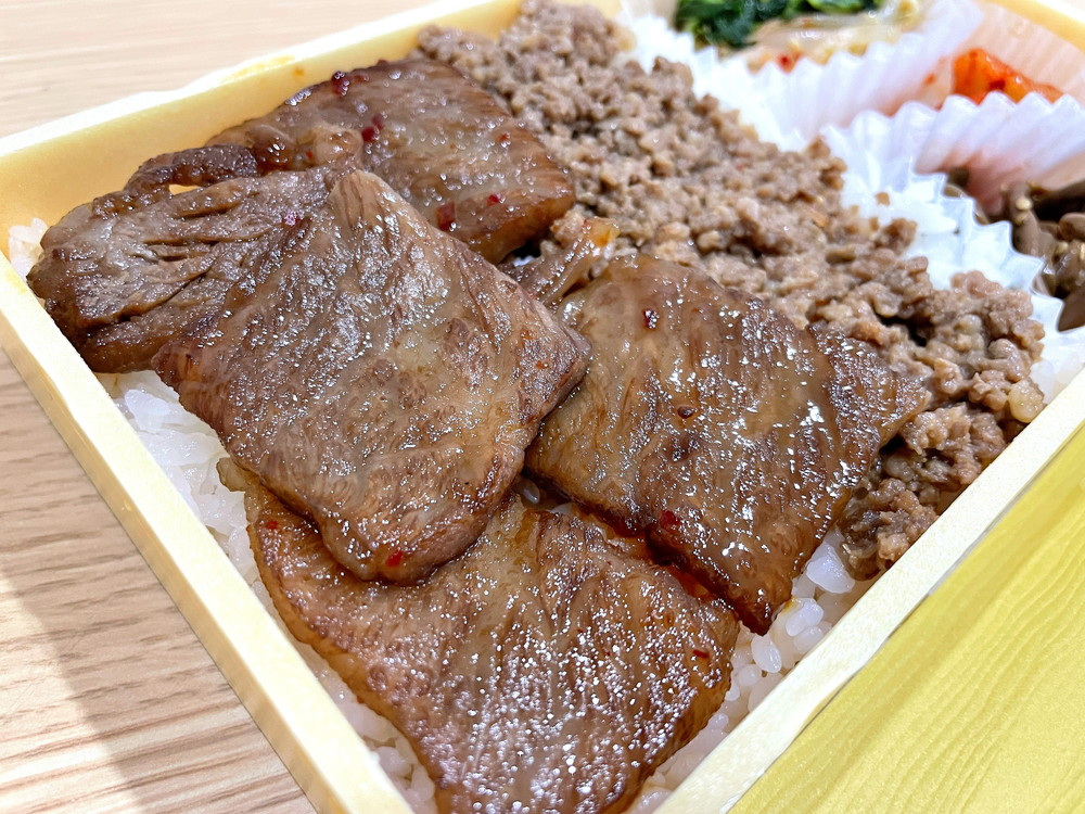 そぼろにカルビ、ナムルやキムチもセットになっています。