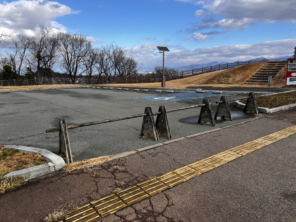 総合案内所の「はらっぱ館」さんにお電話すると冬期、駐車場は封鎖しているとのことでした。(おおよそ3月いっぱい)