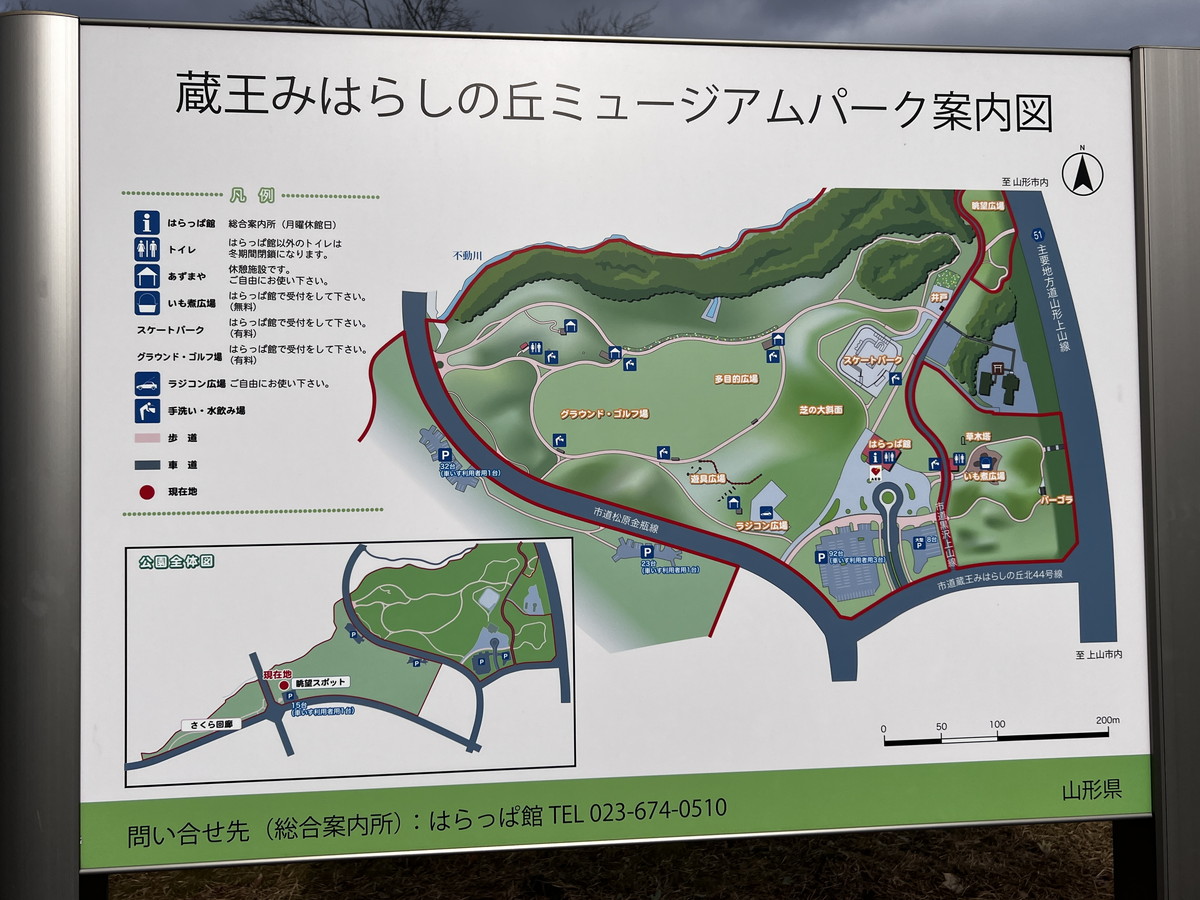 「蔵王みはらしの丘ミュージアムパーク」は広いので、事前に「眺望スポット」に行かれる方は案内図をチェックしていただくといいかもしれません。