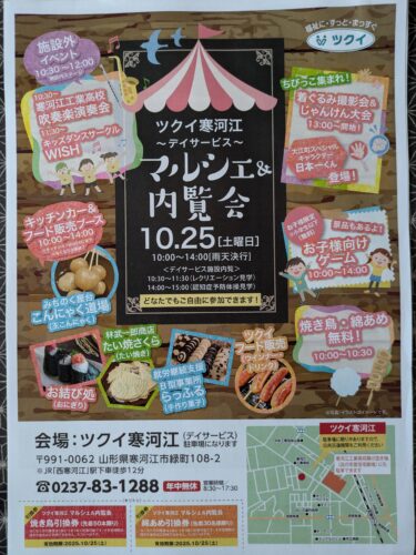 【山形イベント情報10/25】ツクイ寒河江 マルシェ&内覧会(寒河江市)