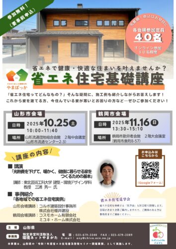 【山形イベント情報10/25・11/16】省エネ住宅基礎講座(山形市・鶴岡市)