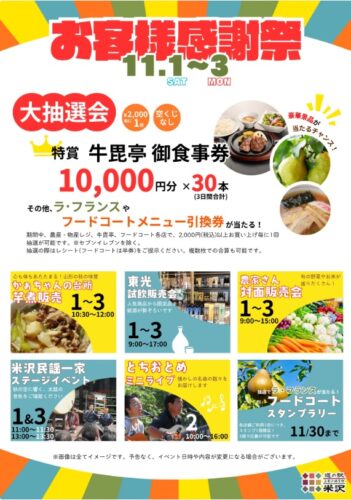 【山形イベント情報11/1-3】道の駅米沢で開催!お客様感謝祭(米沢市)