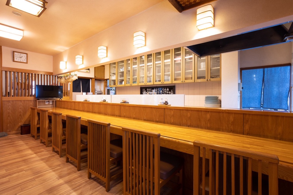 店内は清潔感があり、カウンター席を中心に、ゆったりと食事が楽しめる空間。