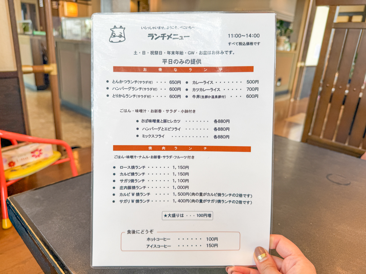 2.べこいちのメニュー