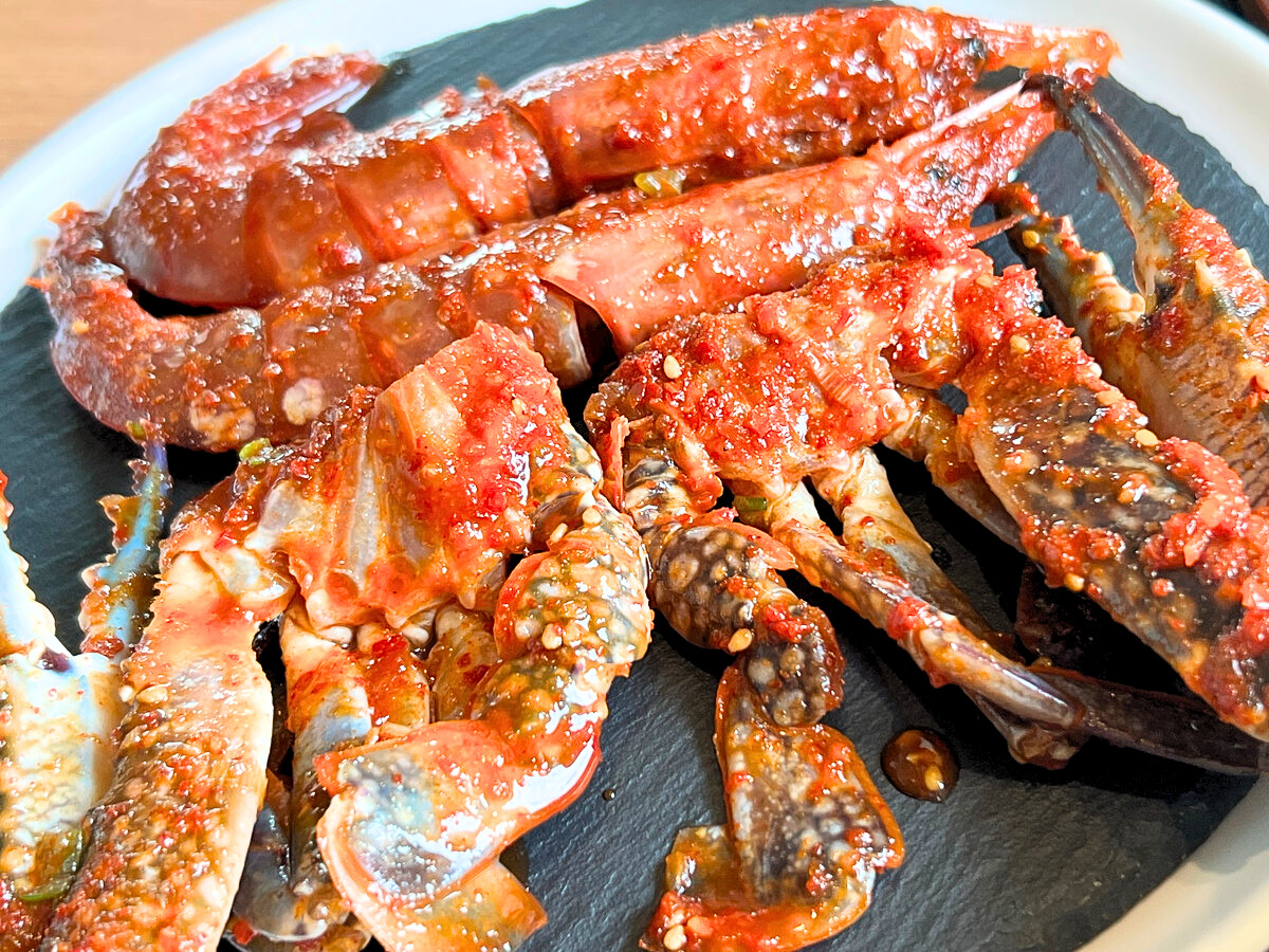 ヤンニョムとは韓国料理の合わせ調味料の総称で、ケジャンとは生の蟹を薬味ダレに付け込んで熟成させた韓国料理のことだそう。