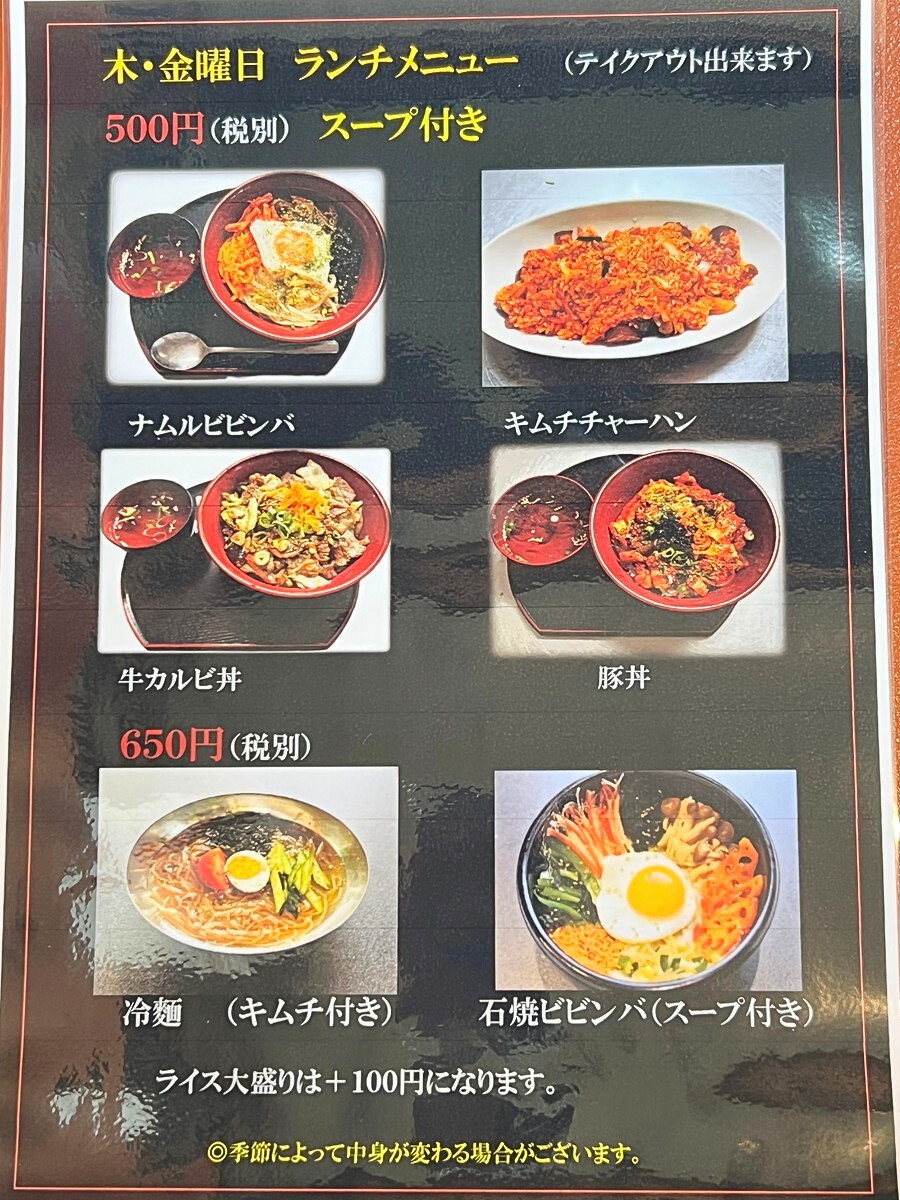 【木・金曜日のランチメニュー】