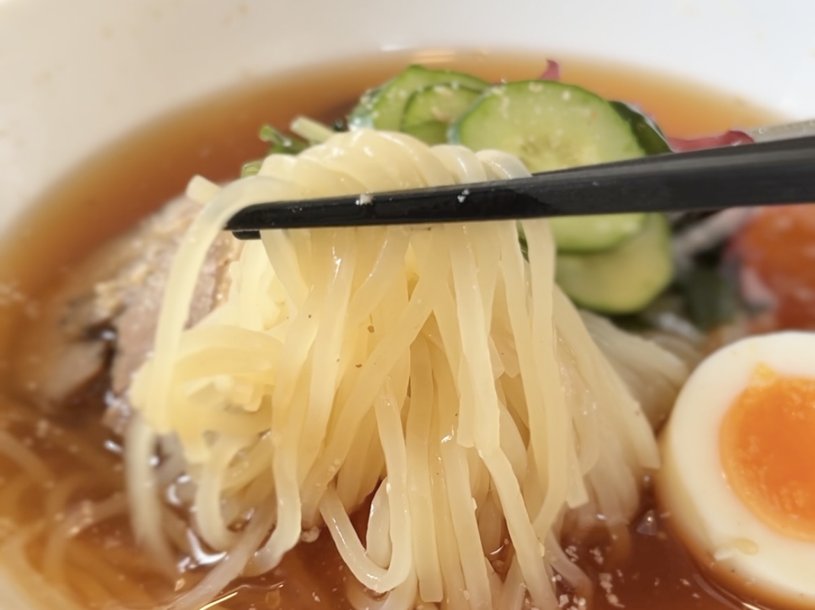 細めのつるつる麺は弾力があって、後味すっきりのスープと相性抜群でした。
