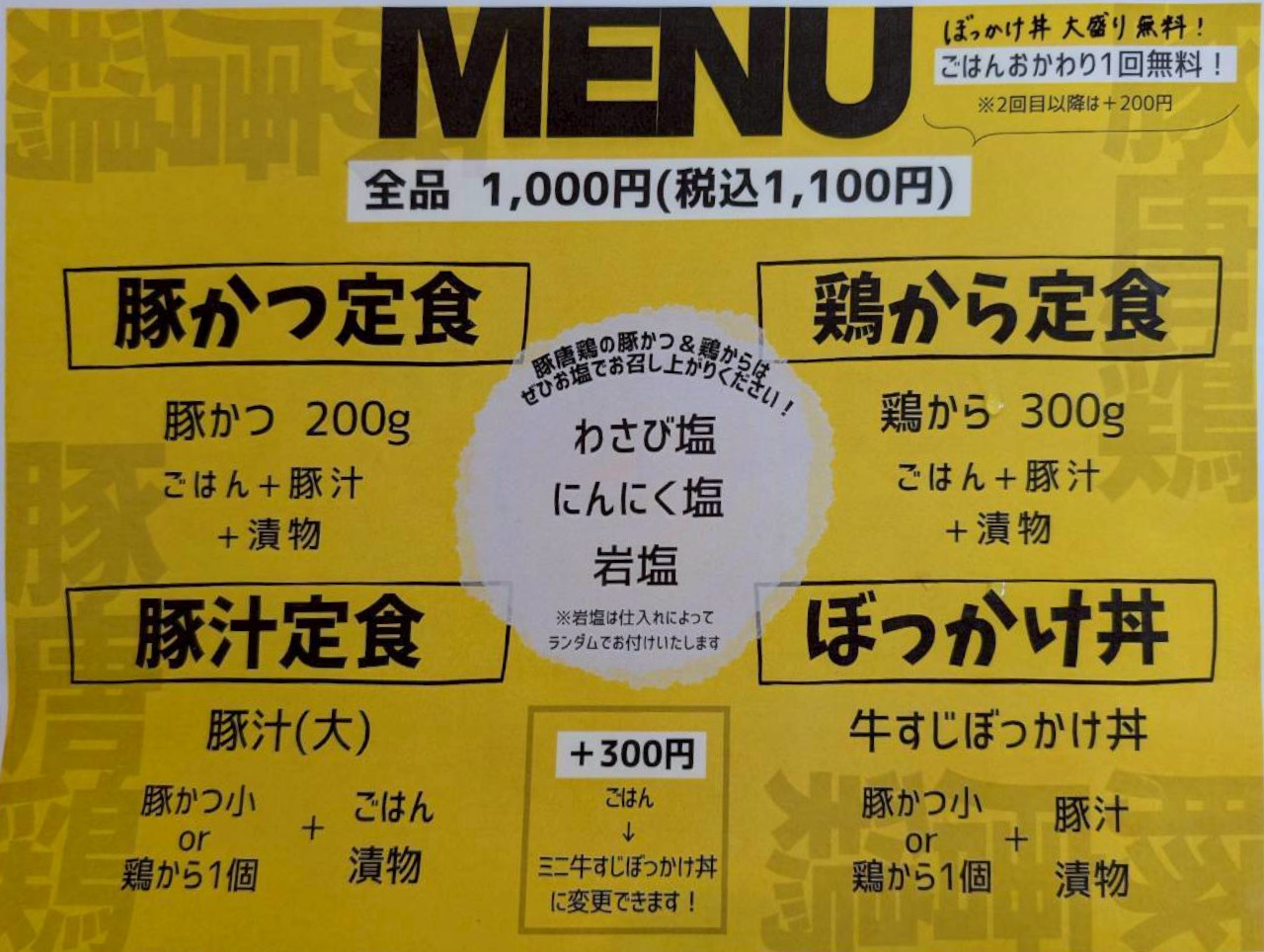 私的は、わさび塩がトンカツにも鶏カラにも合う感じで気に入りました。