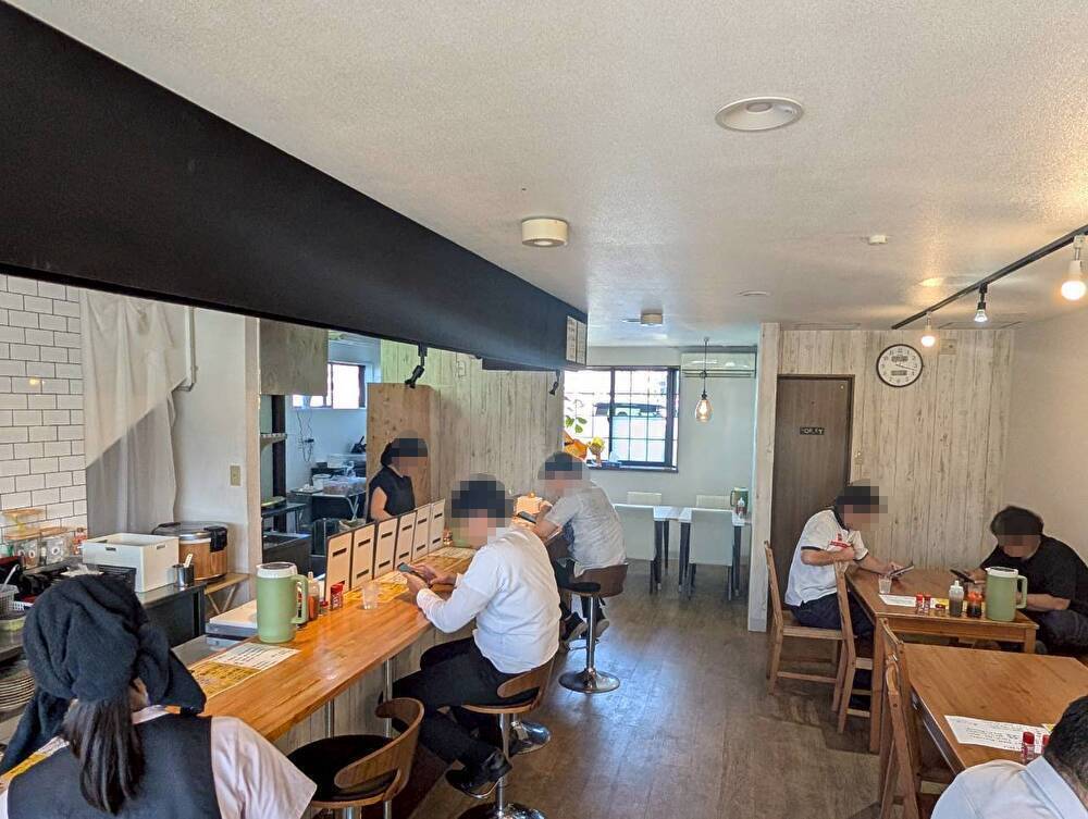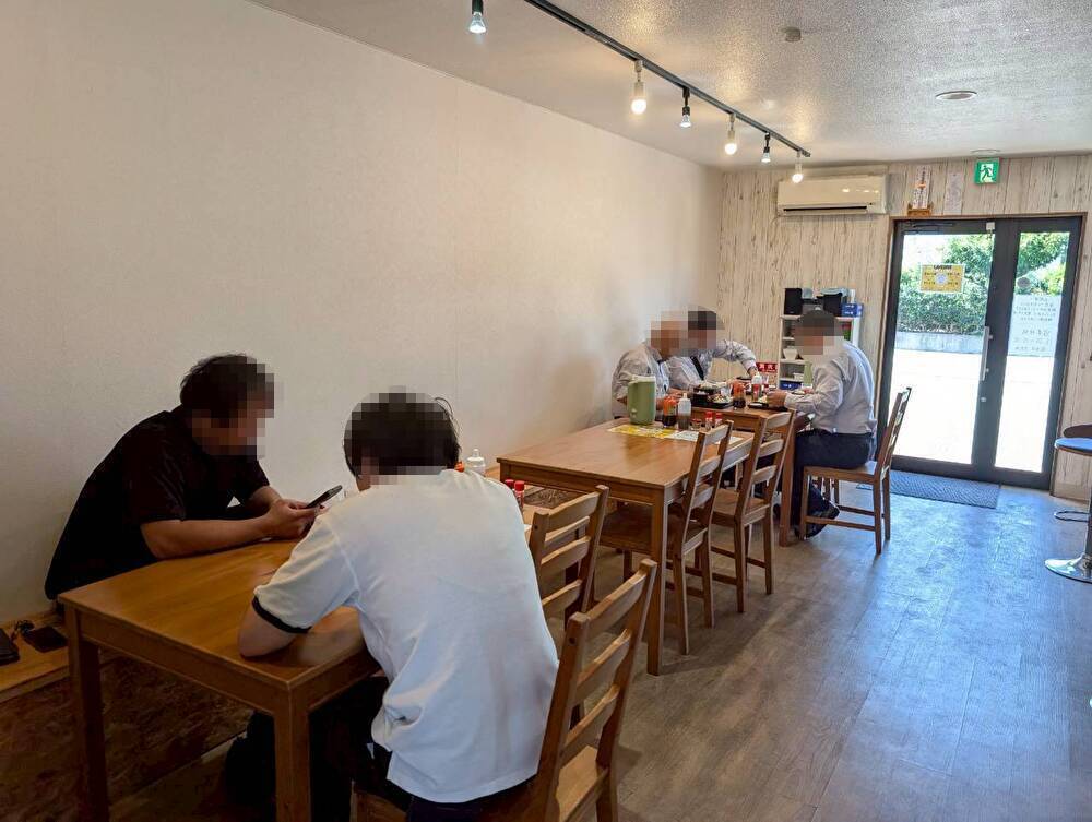 通路を挟んで反対側に4人掛けテーブル席が3セット、