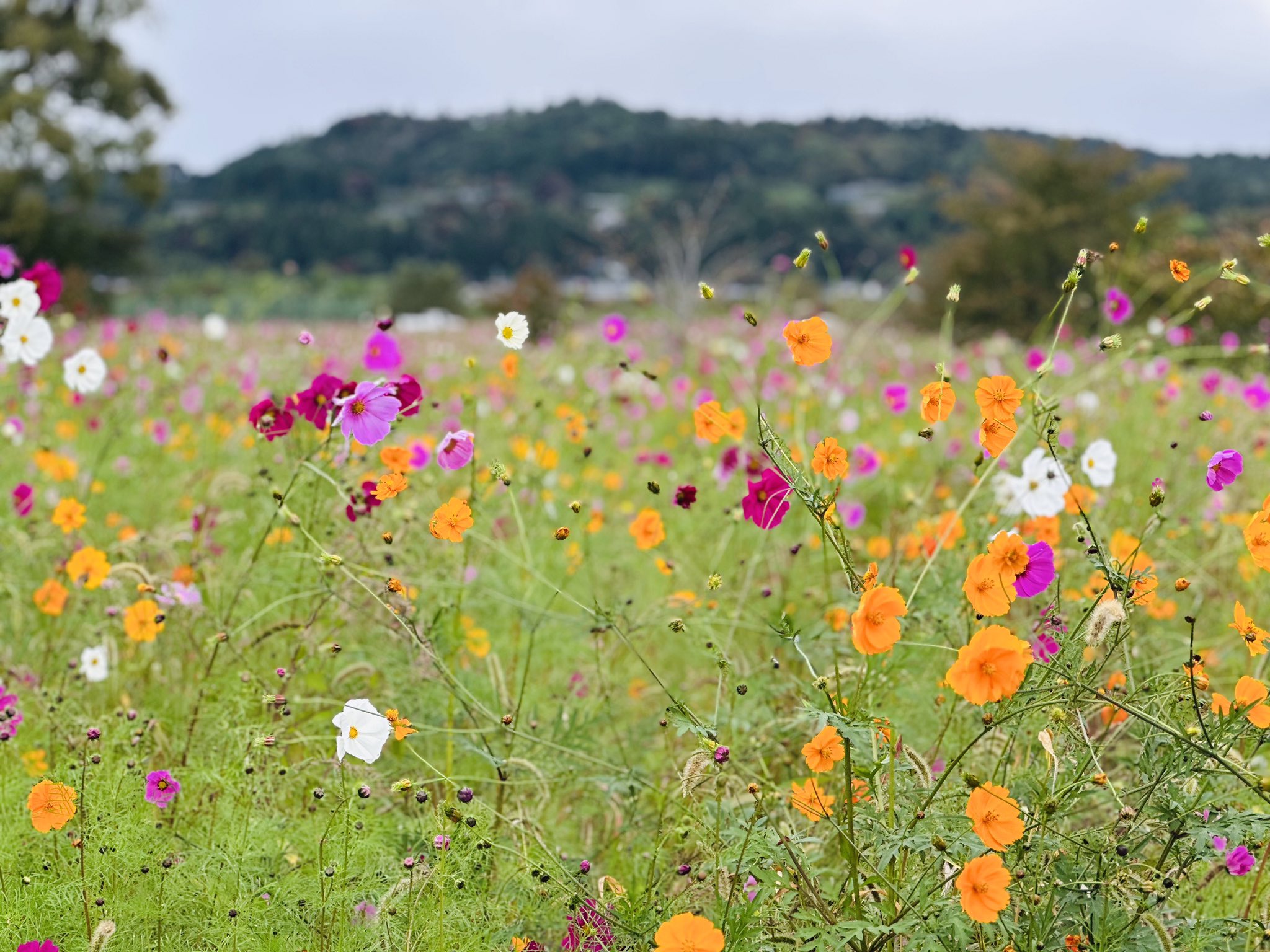 8種類のコスモスが植えられていますが、種類によって開花時期が異なるため、訪れるたびに違った景色がみられますよ♪