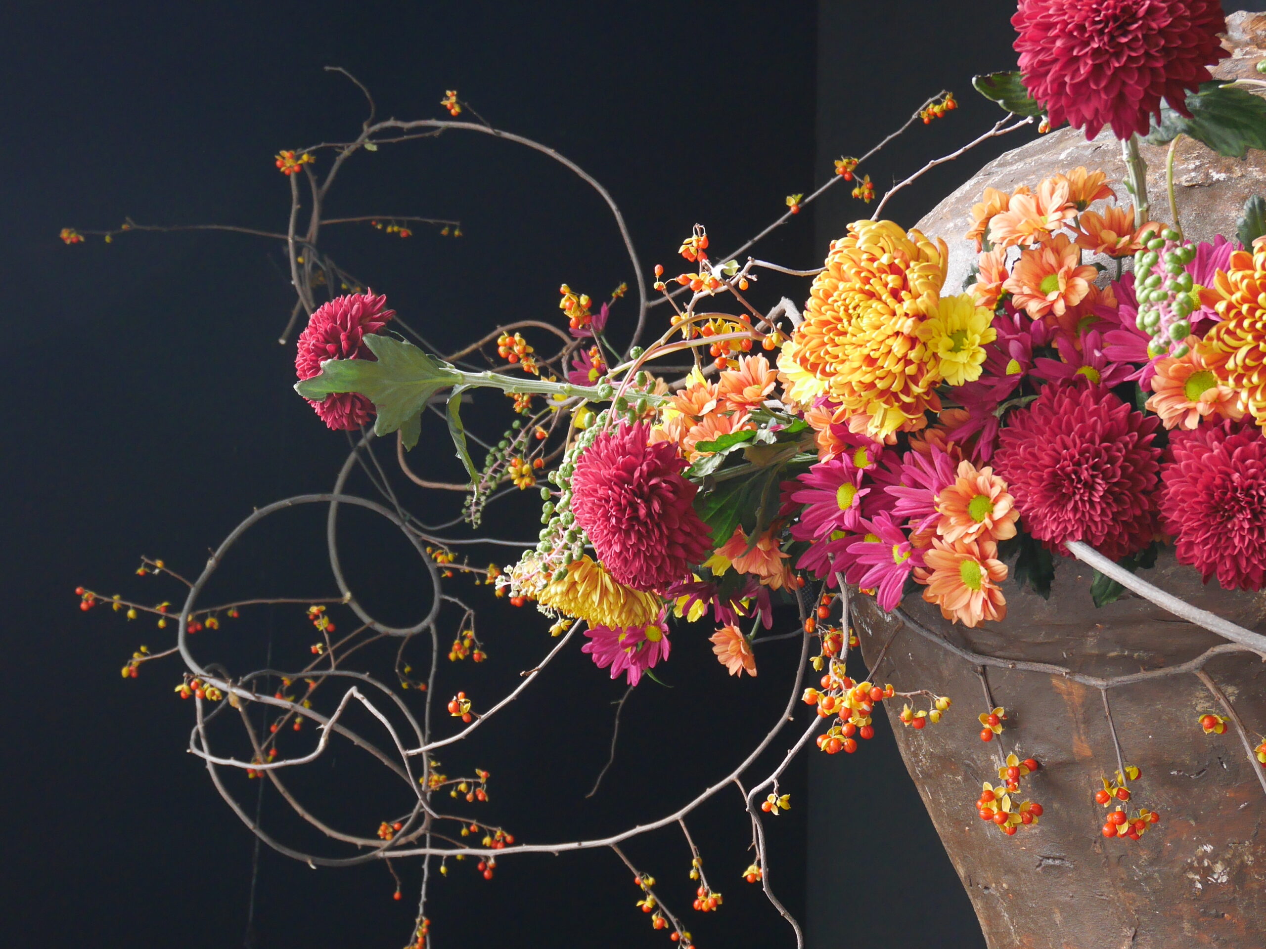 色とりどり、大きさもさまざまな菊がとても華やかに飾られておりとってもきれいです♪