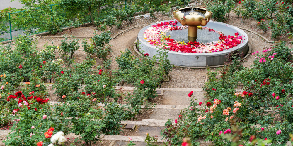 約90種3,000本ものバラが植えられている「あつみ温泉ばら園」。
