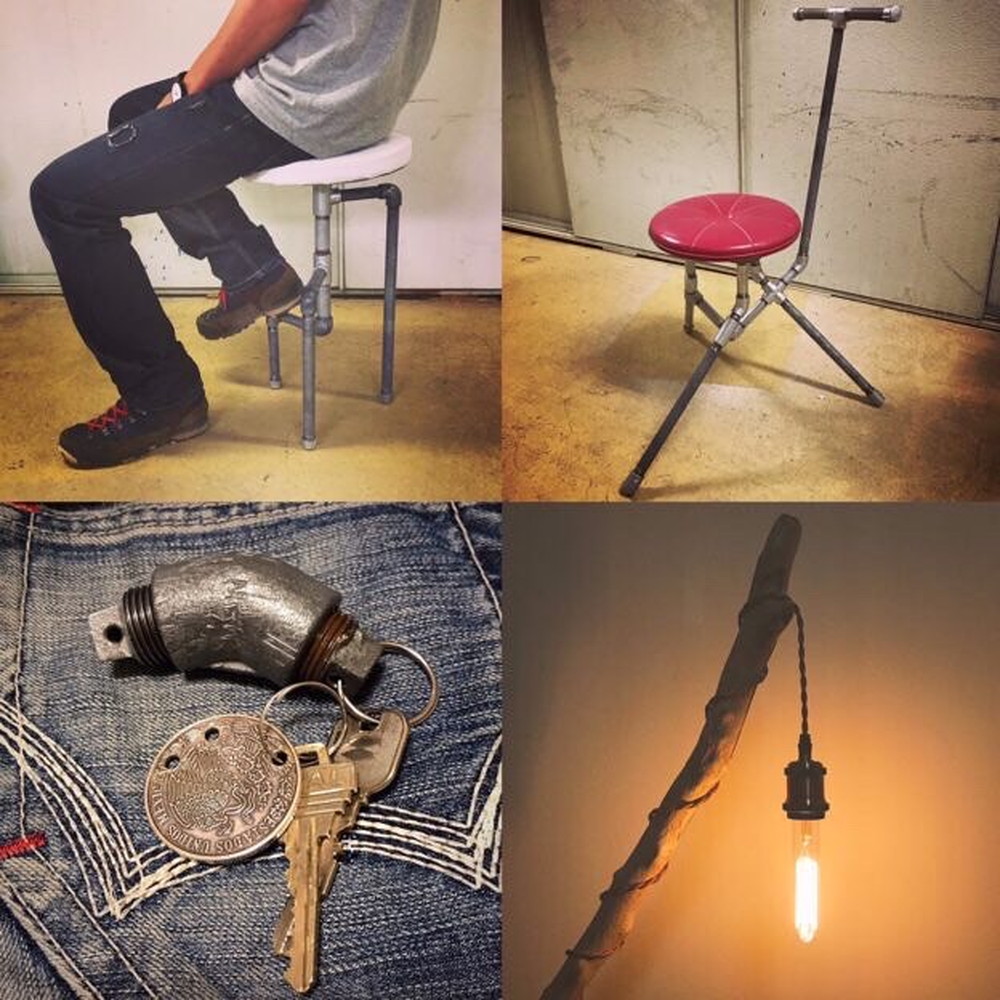 配管で作るハンガーラック、配管で作る椅子等、これまでにない個性あふれる作品です。