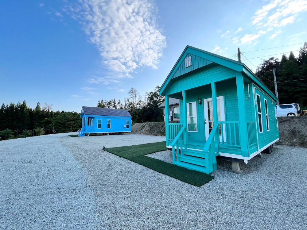オートキャンプ場はもちろん、カラフルなトレーラーハウスやジャンボハウス、日帰り温泉も!