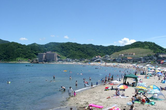 三瀬から海沿いのトンネルを越えた先、国道7号線沿いにある海水浴場。