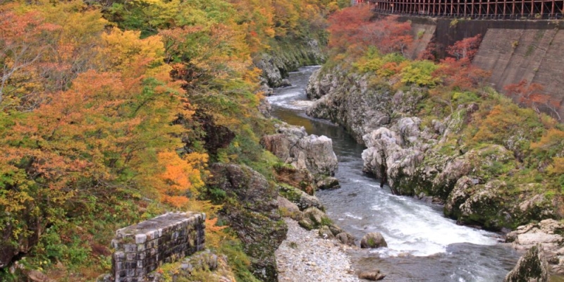 小国町にある景勝地「赤芝峡」は、全国でも有名な紅葉スポット。