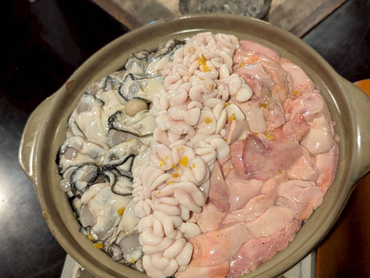 牡蠣と鱈の白子とあん肝がビッシリです。