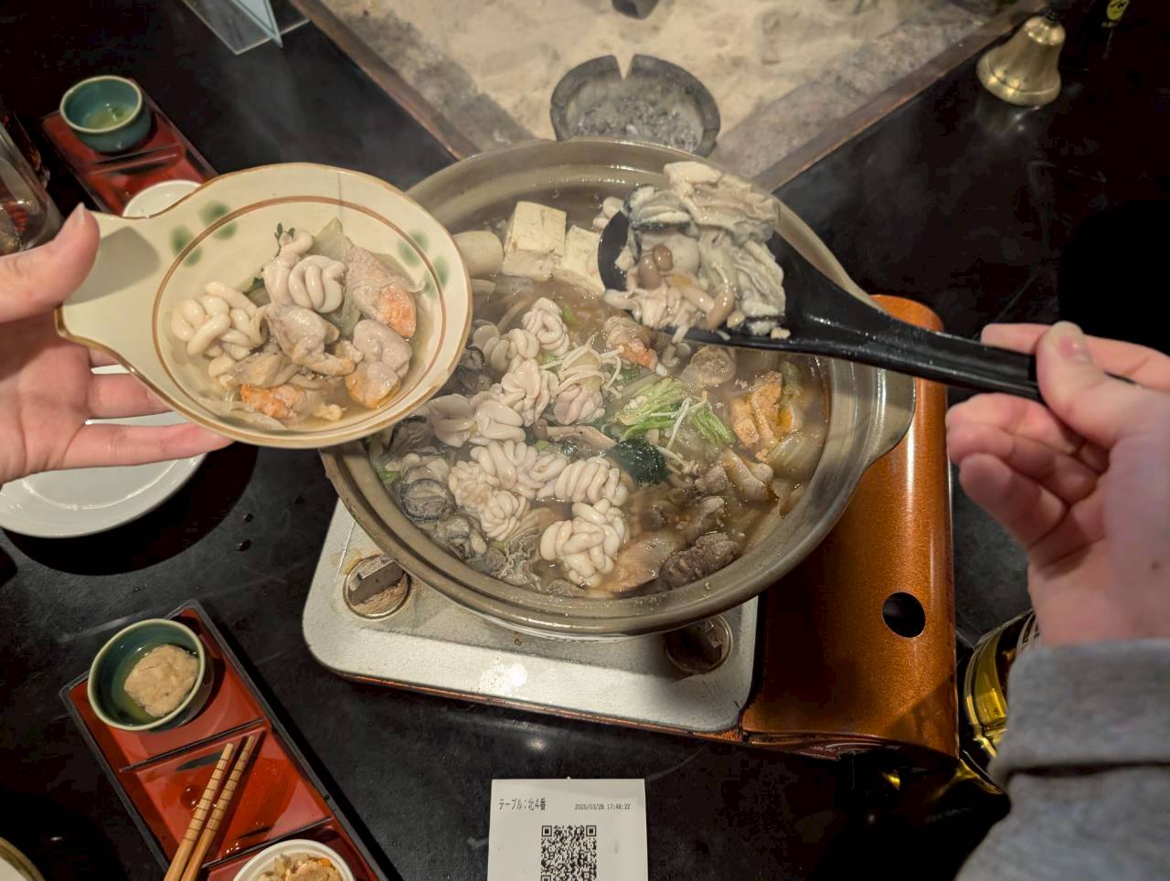 今回私たちは囲炉裏席に配置していただきました。