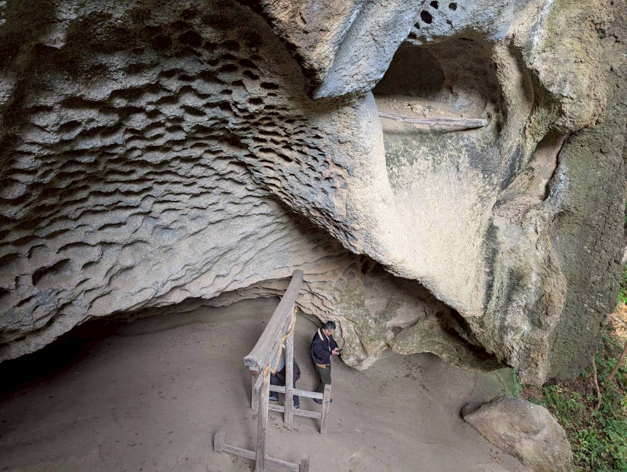 巨大な岸壁の蜂の巣状の穴