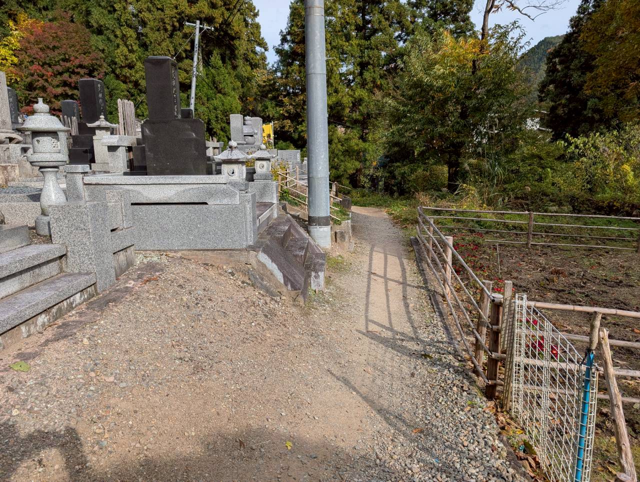 墓地の前を横切り。