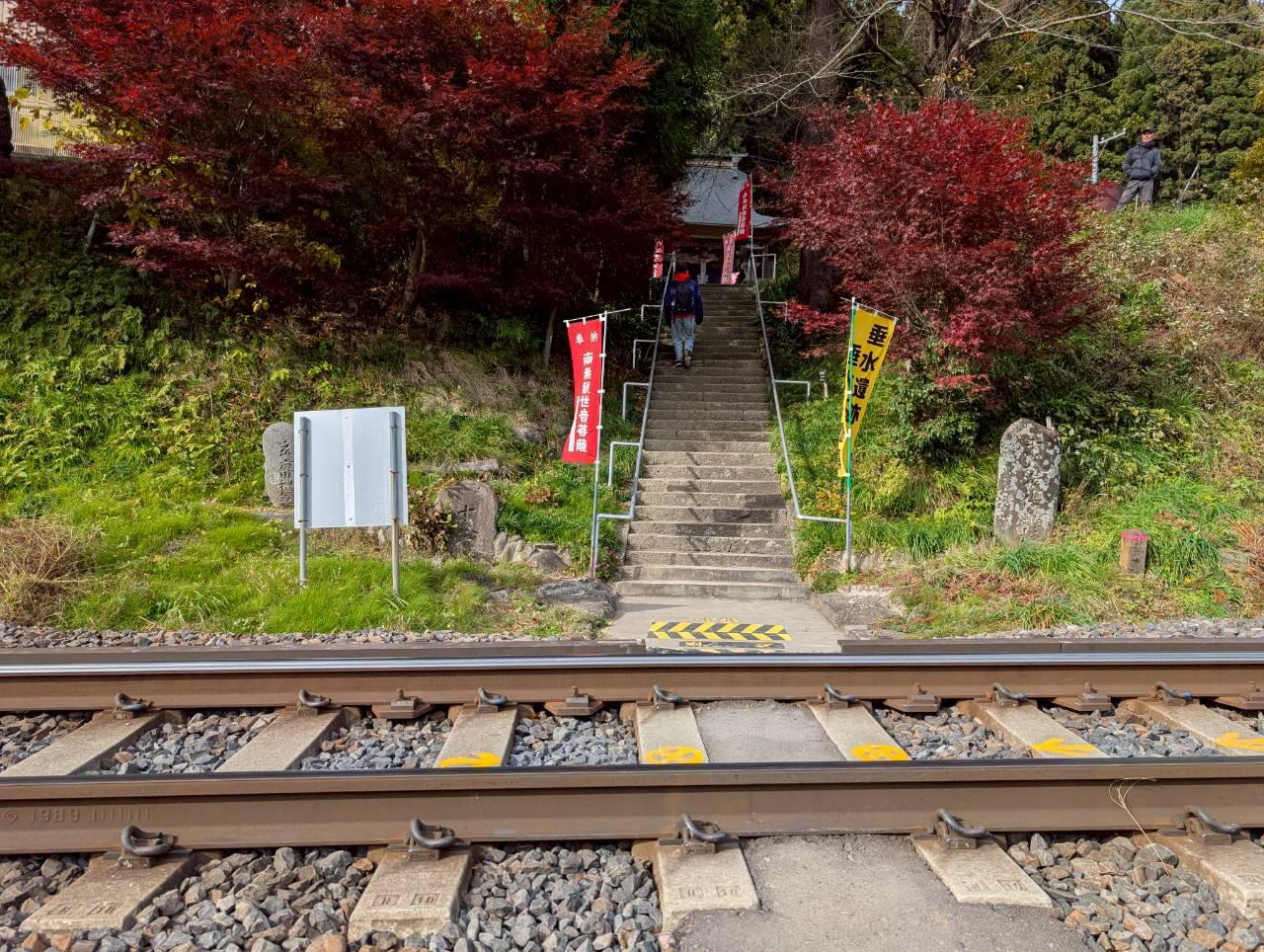 仙山線の線路を注意して渡りまして。