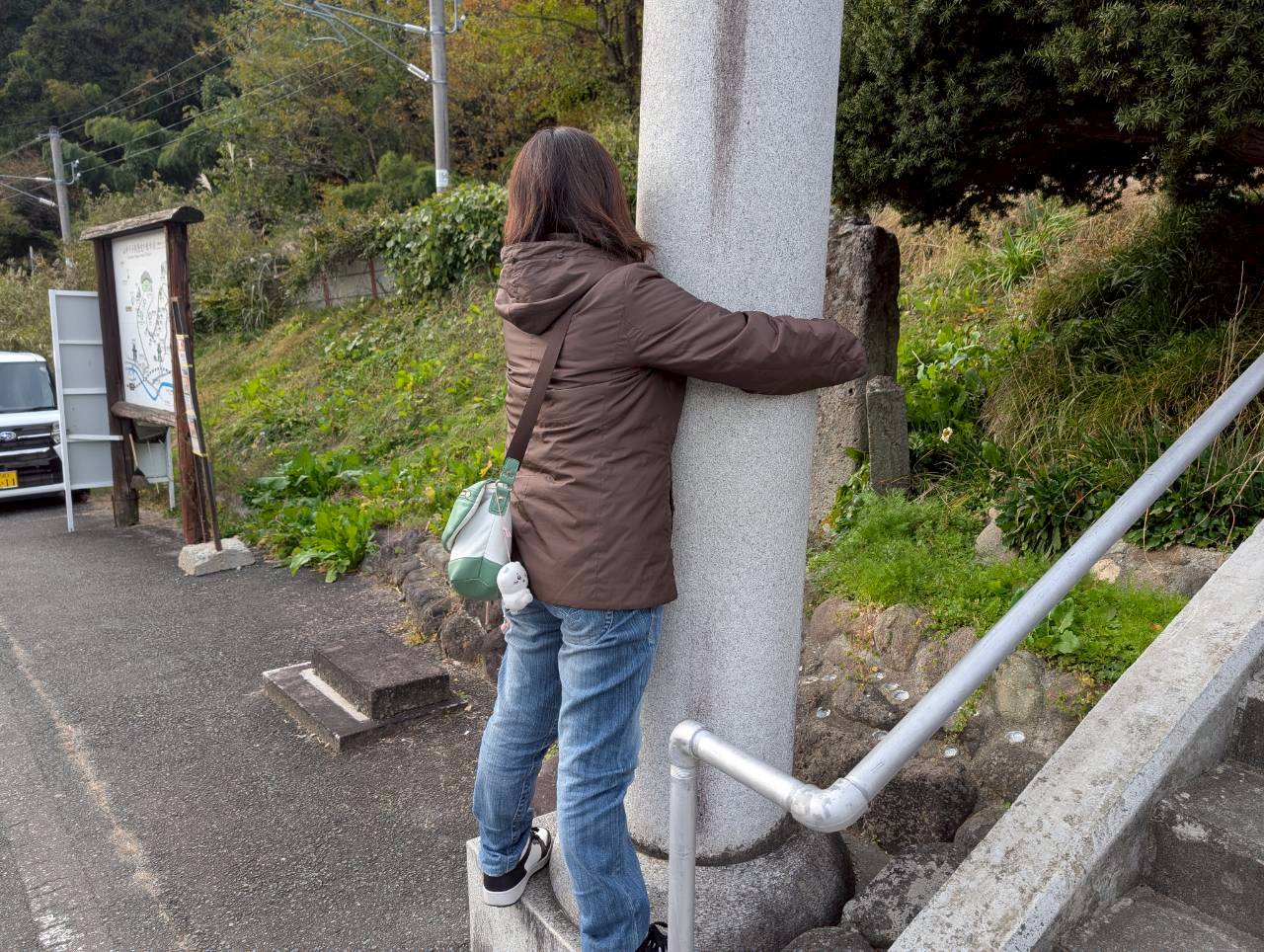 柱に抱きついて「ついてる」と10回唱えると