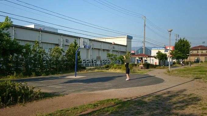 他の公園ではあまり見かけないバスケットゴールがありました 🙂