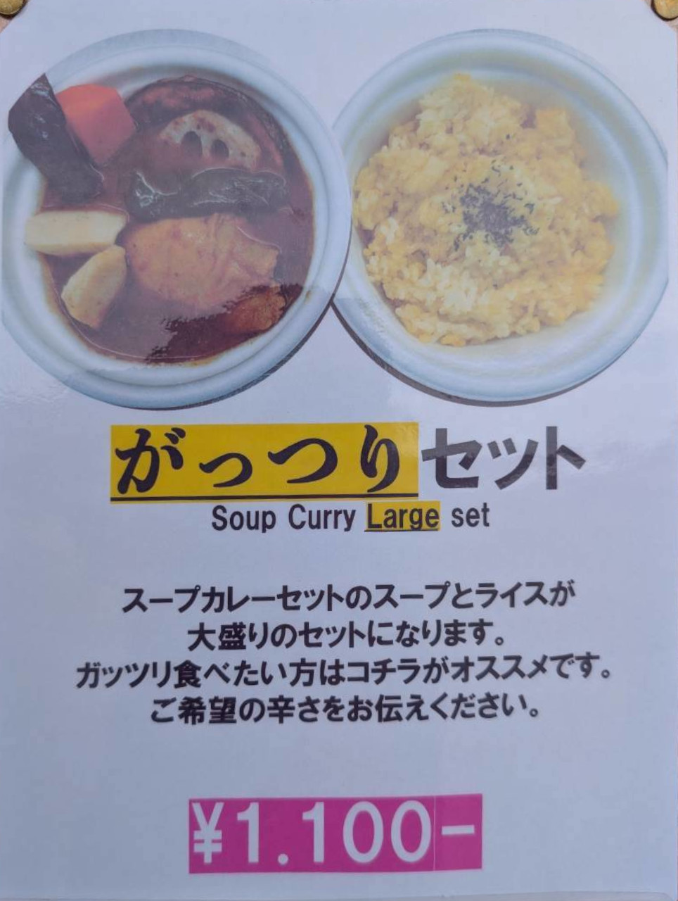 がっつりセットはスープとライスが大盛りに成ってるセットだそうです。