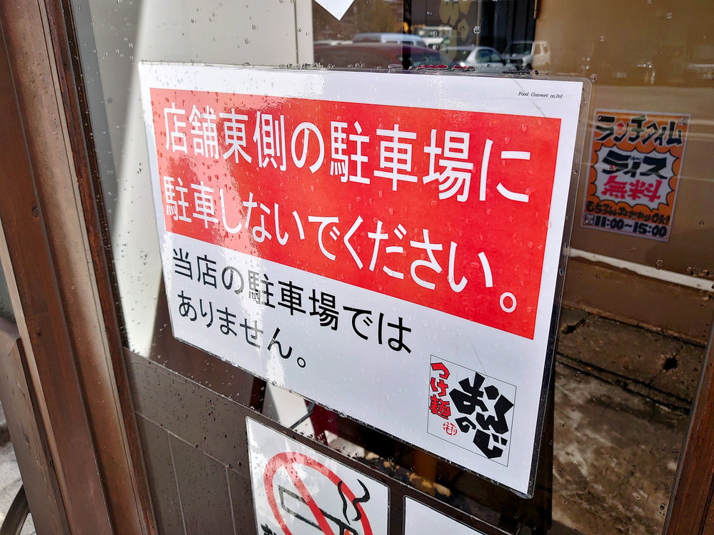 駐車場は店舗の南側と北側にあるんですが、東側は駐車不可なのでご注意を。