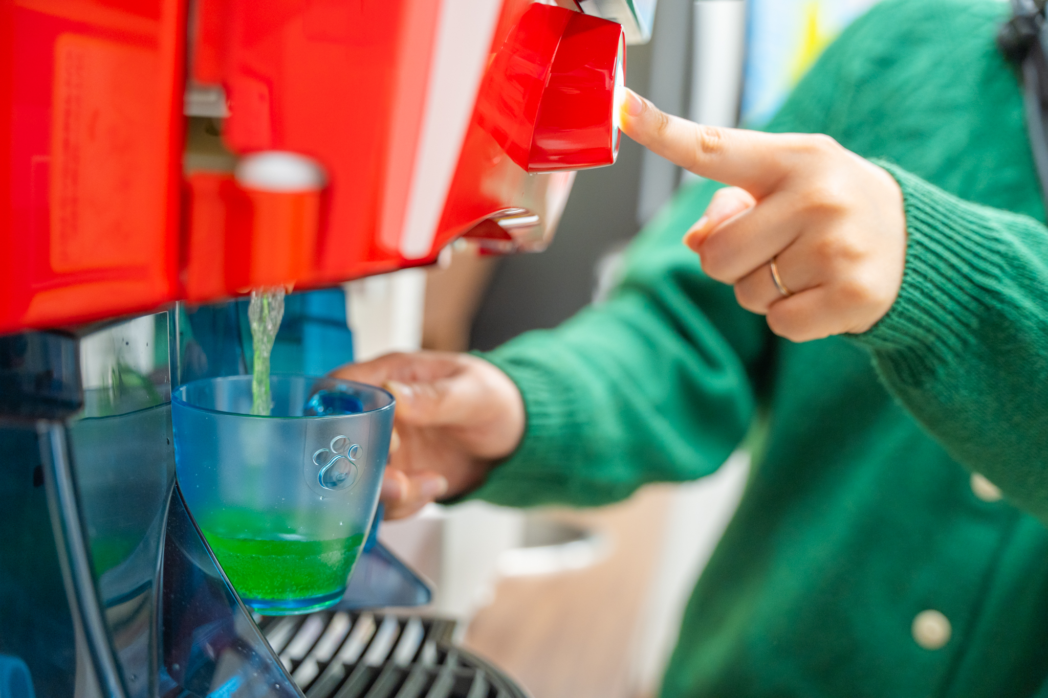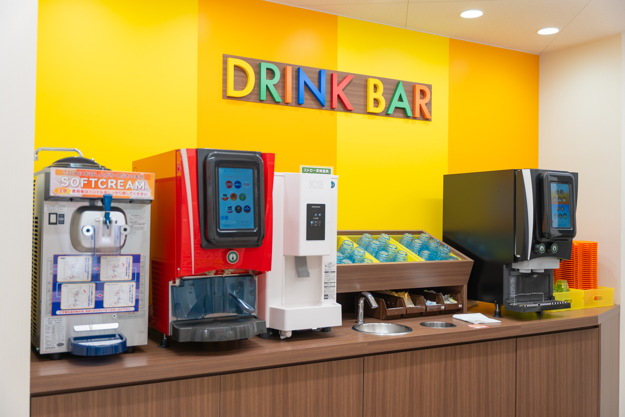 ドリンクバーを利用する場合は受付前へ!自分のペースで自由に楽しめます。