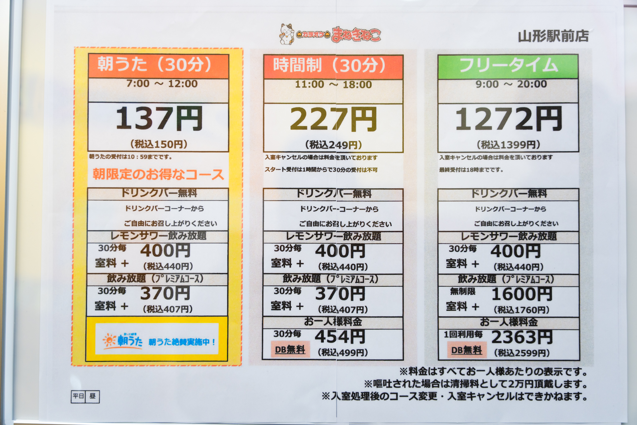 4.カラオケまねきねこ山形駅前店のキャンペーン
