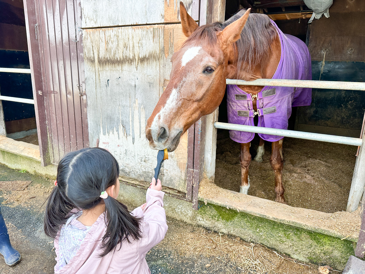 えさやりはもちろん、馬のお散歩やブラッシング体験なども楽しめます。