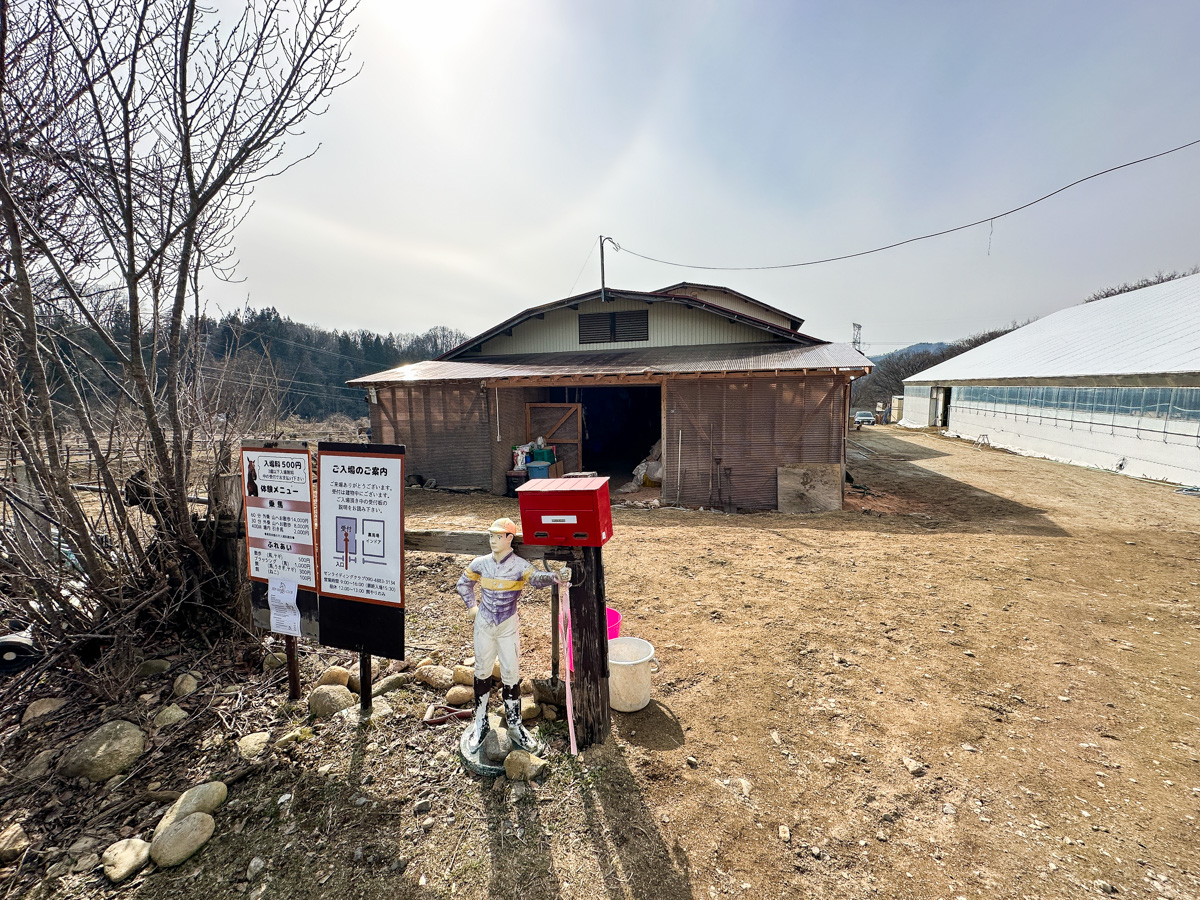12号線を蔵王方面に進むと左手にみえるこの看板が目印です。