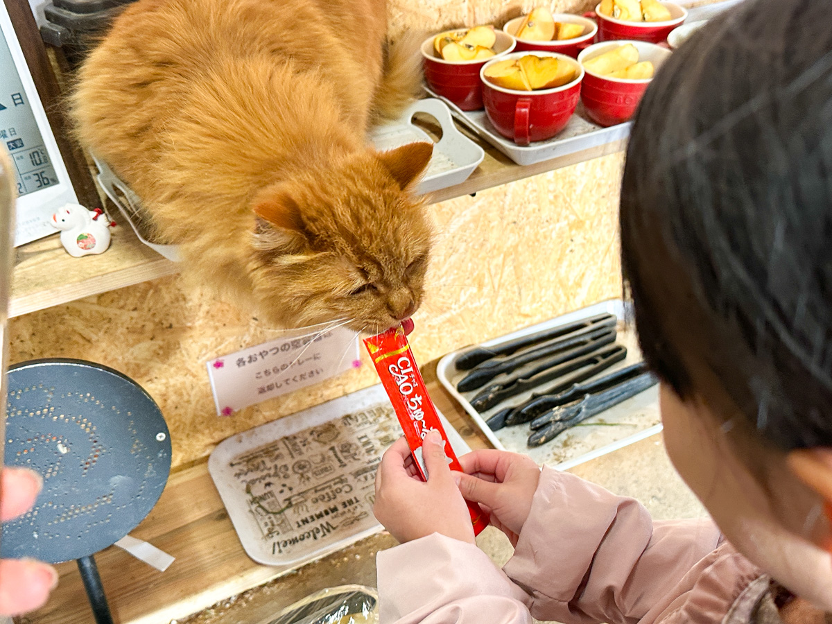 まずはねこちゃんへのえさやり!