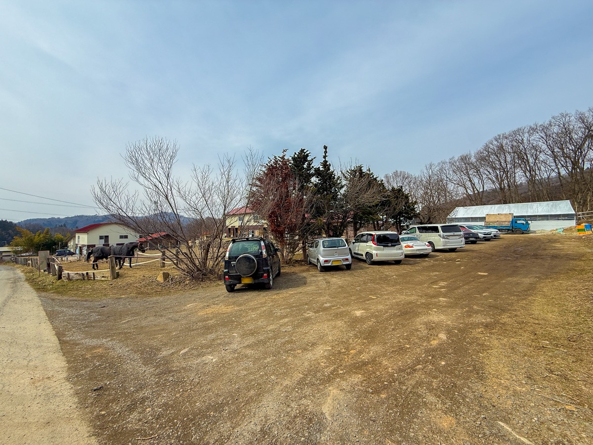駐車場から車を降りてすぐに建物(受付のある厩舎(きゅうしゃ))があります。
