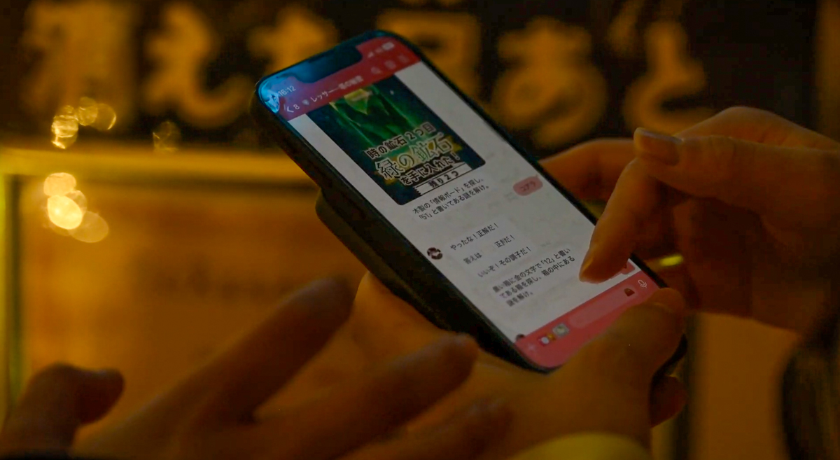 LINEの指示に従い町を探索し、ヒントを探し、謎を解いて最後の敵まで辿り着きましょう!