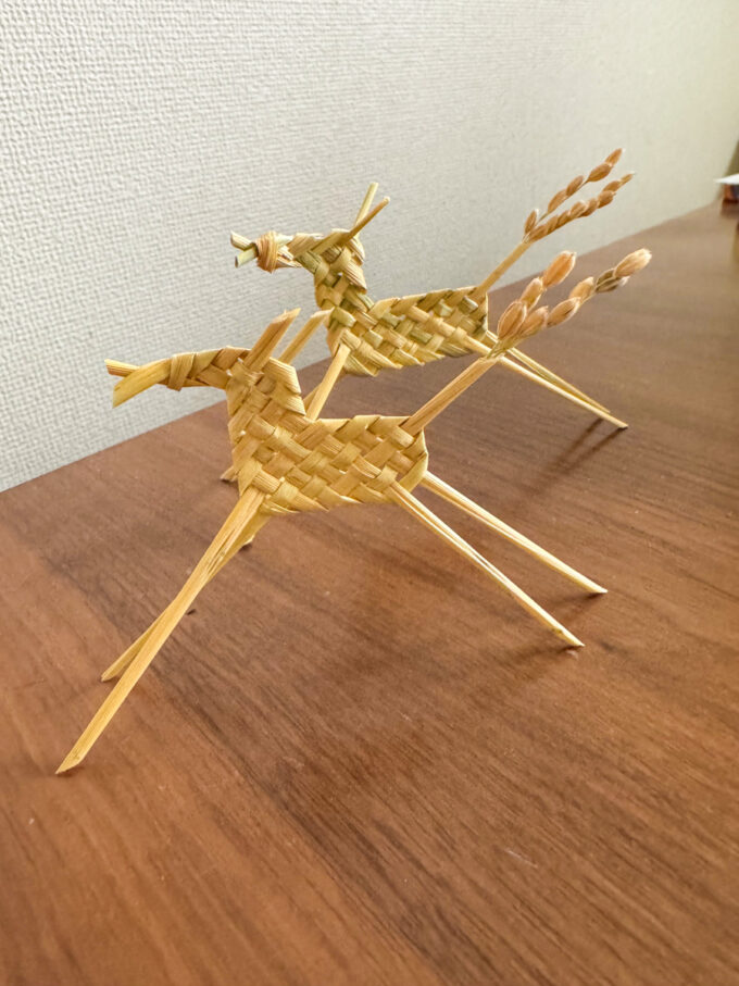 manosubeは、自然栽培ササニシキの稲わらで作られたイタヤ馬作品を販売します。