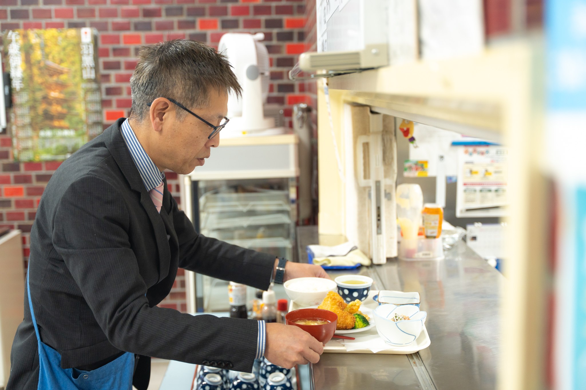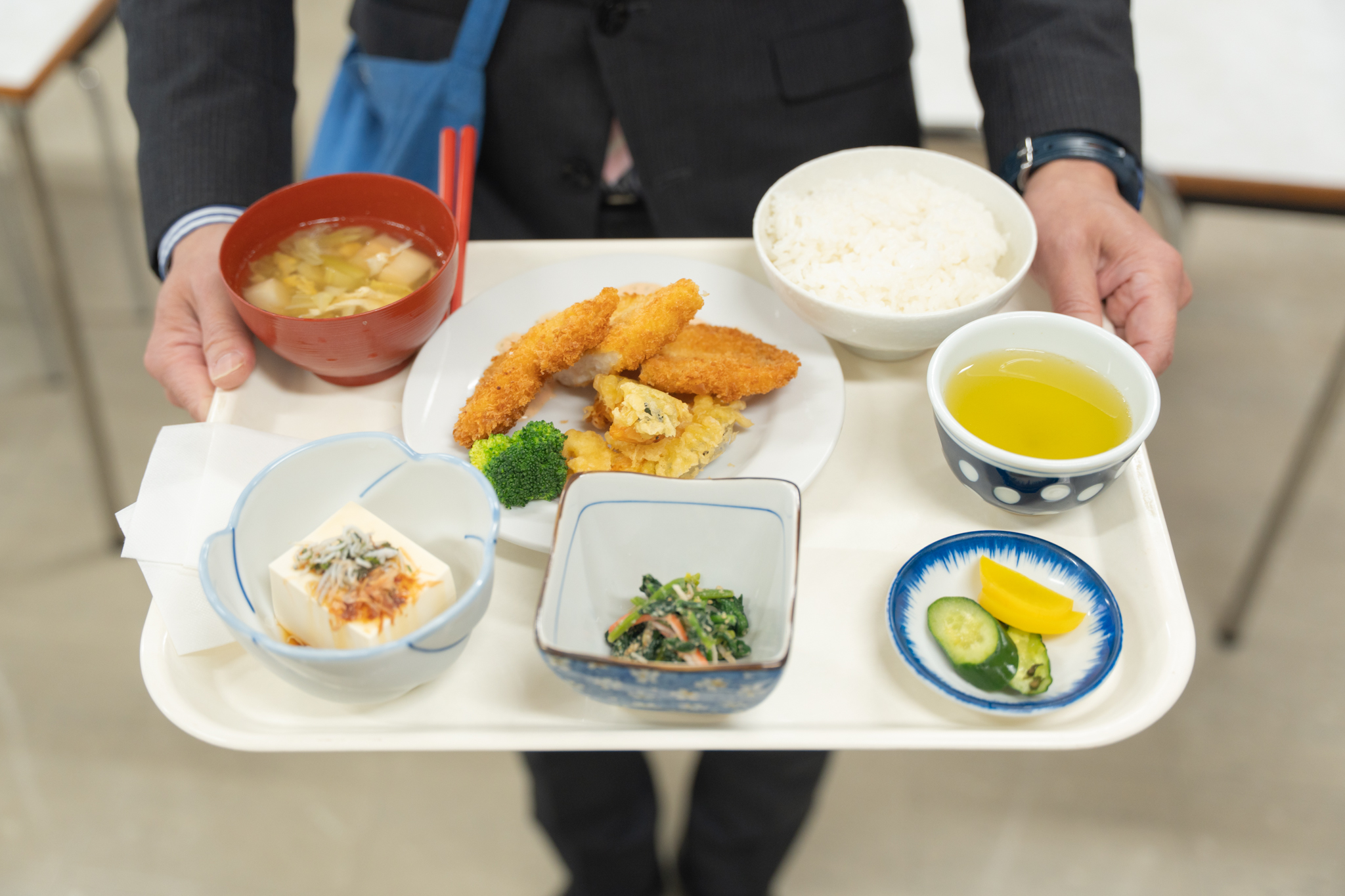 全て完食した中谷局長。 トレイを持って早坂さんの元へ向かい、食器を返却します。