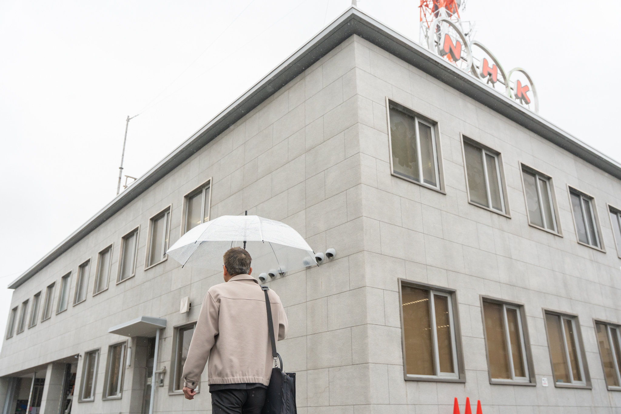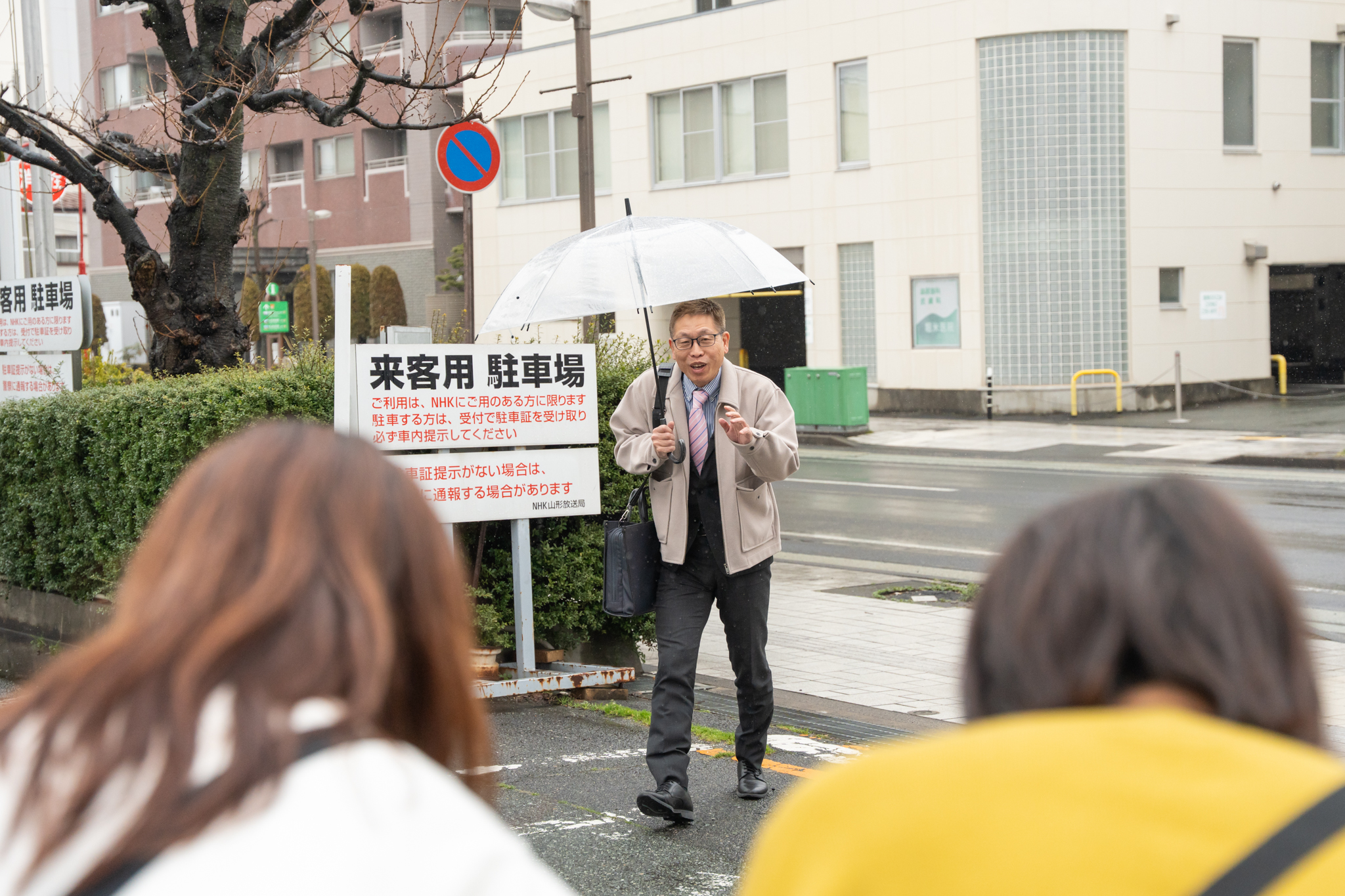 まずはNHK山形放送局へ。朝8時30分頃、ドキドキしながら入口付近で待機するやまぐら取材班。