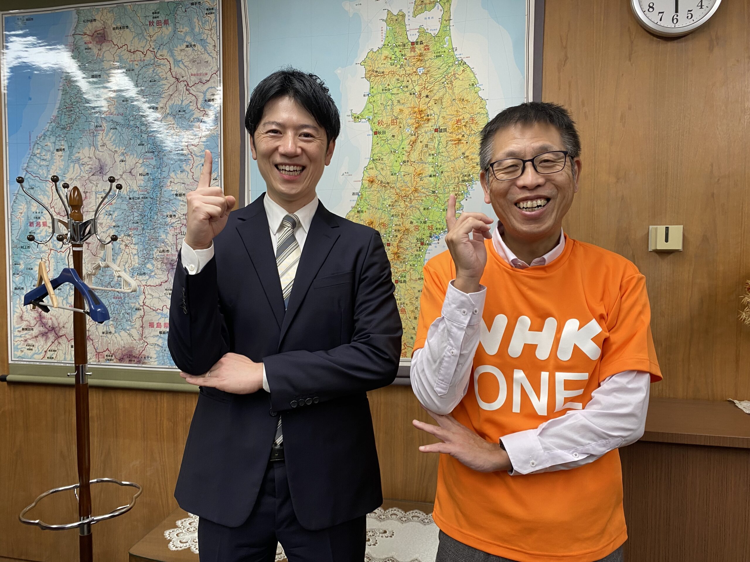 隣にいるのはNHK山形2年目の戸﨑 悠斗アナウンサーです。