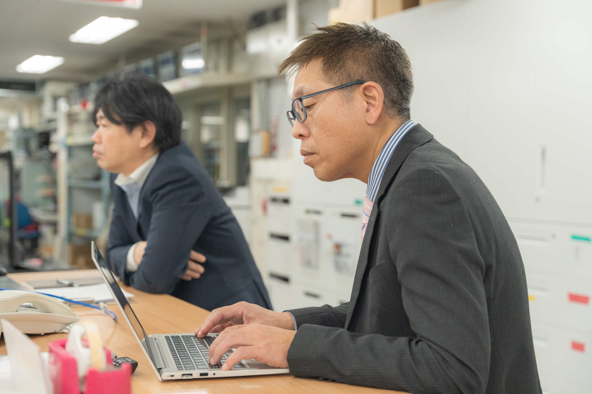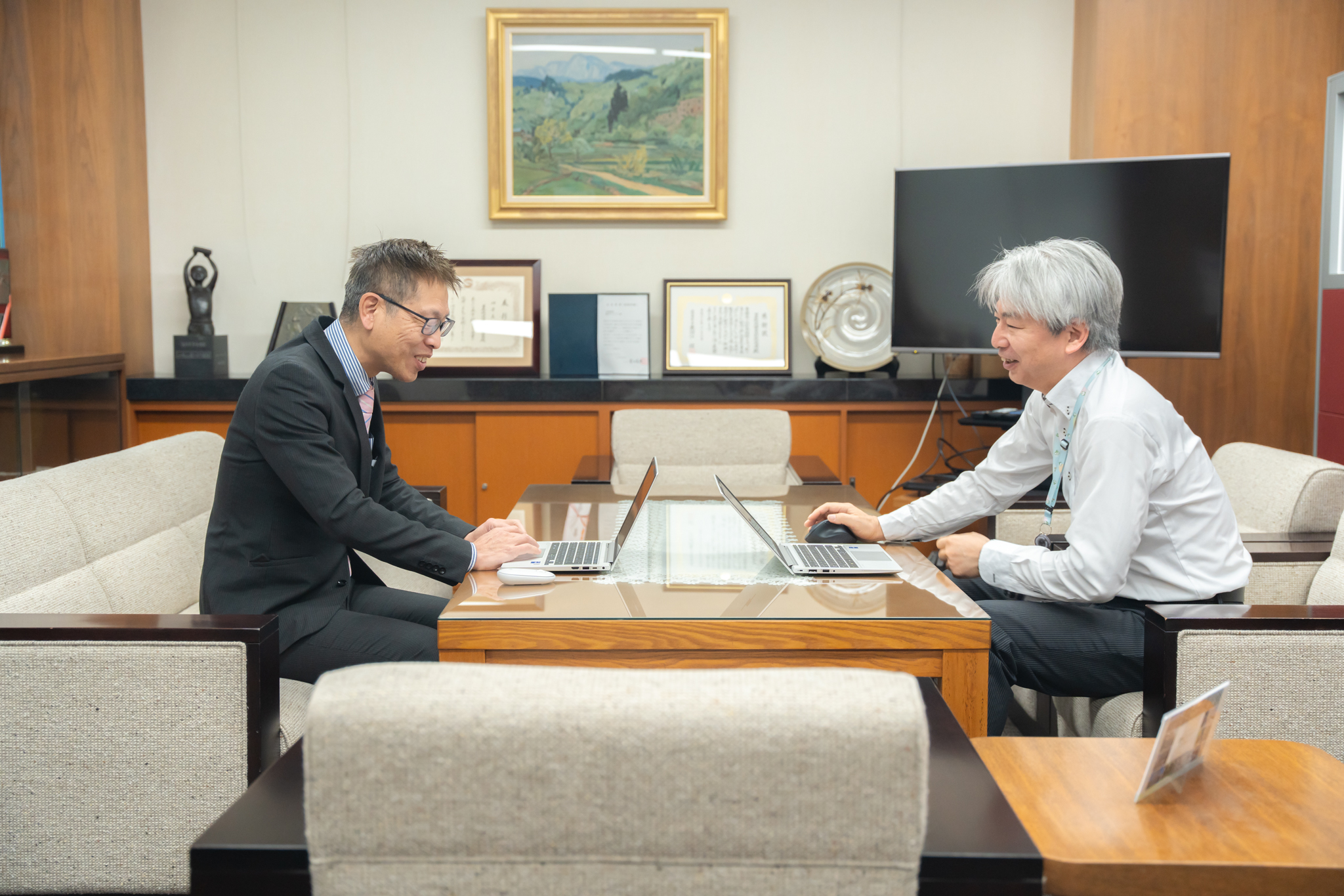 最新ニュースやプロジェクトの進捗をチェックするお二人のやり取りは、真剣そのもの。