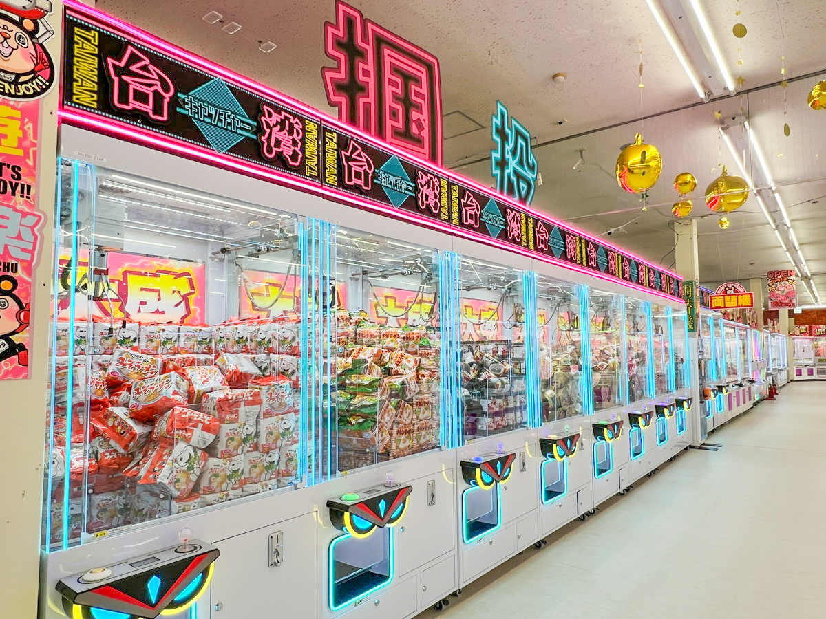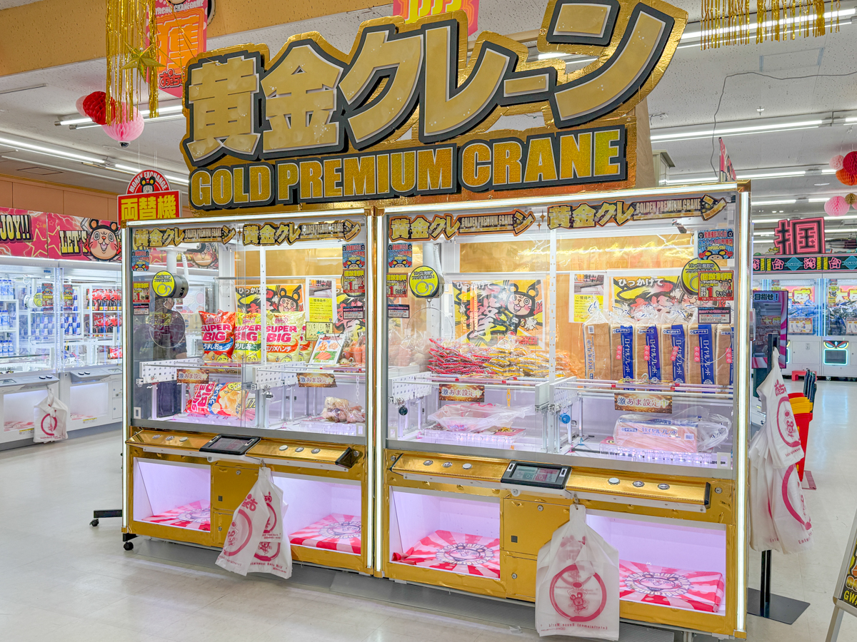 130台以上のクレーンゲームが並ぶ店内には豪華景品がゲットできる「黄金クレーン」や