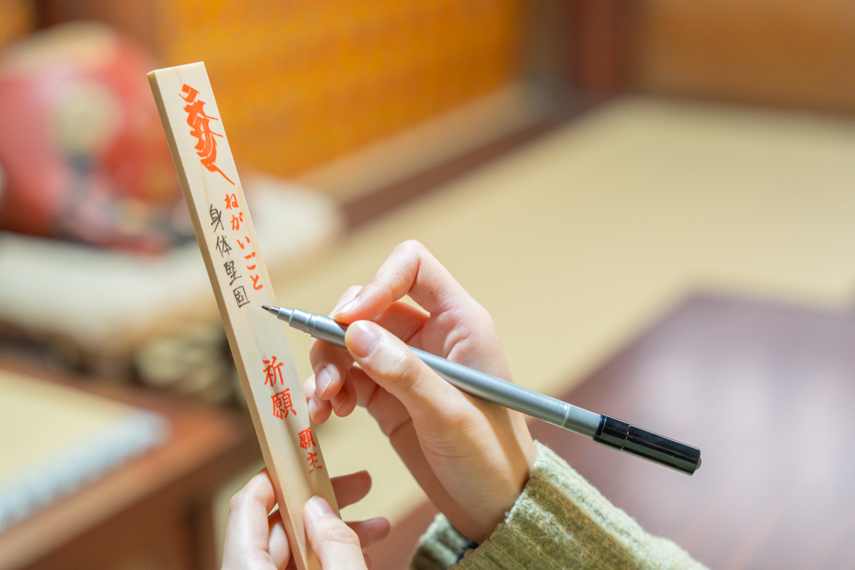 護摩木とは、護摩祈祷の際に使われる細長い木で、願いごとや名前を書き入れ、炎で焚き上げることで仏さまに祈りを届けるもの。