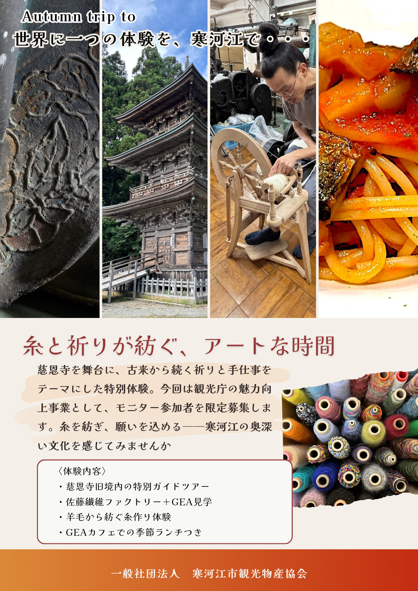 慈恩寺を舞台にした祈りの世界、佐藤繊維での手仕事、そして季節を映すランチ。