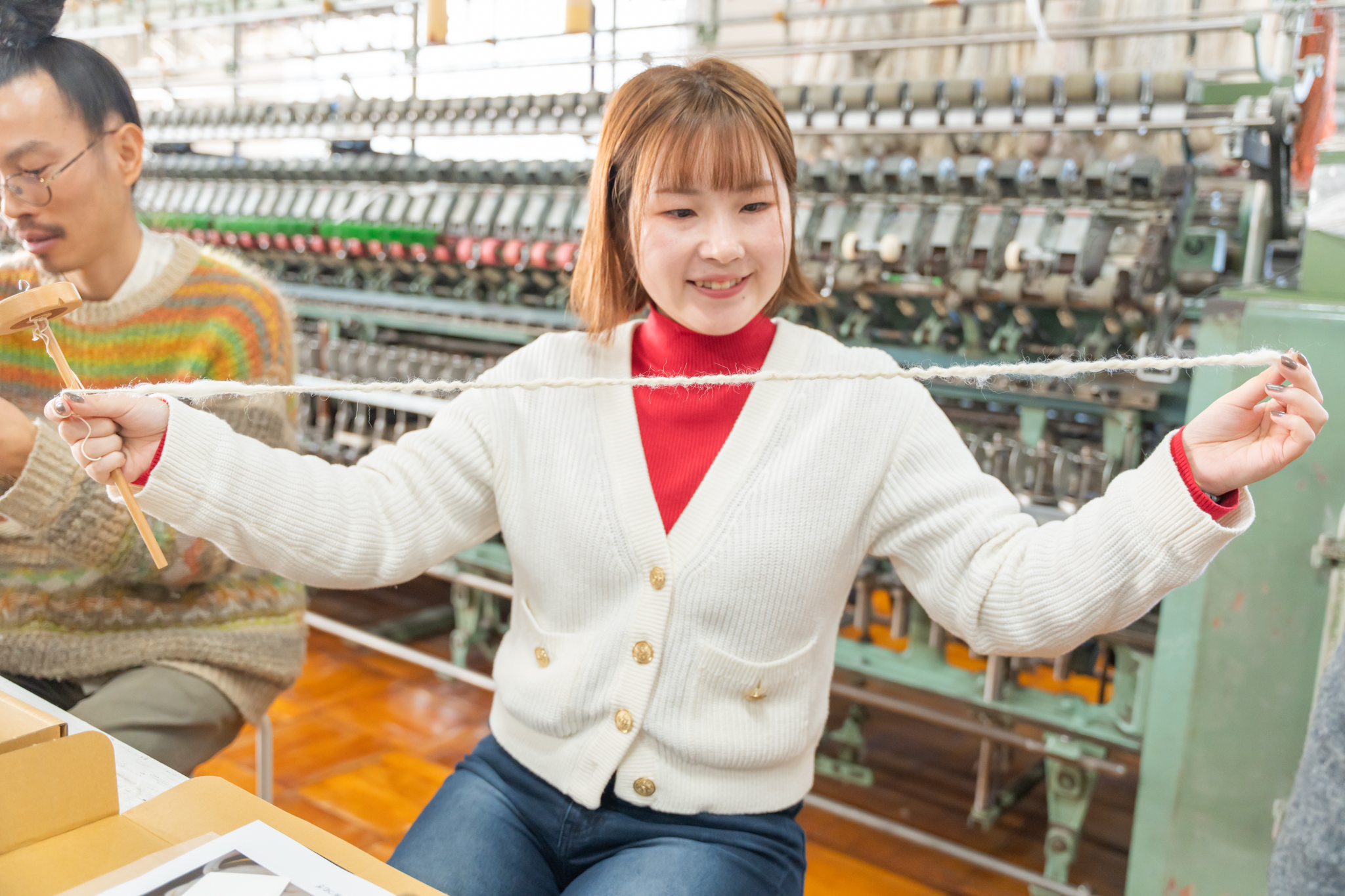 4.佐藤繊維で「糸が生まれる瞬間」を体験