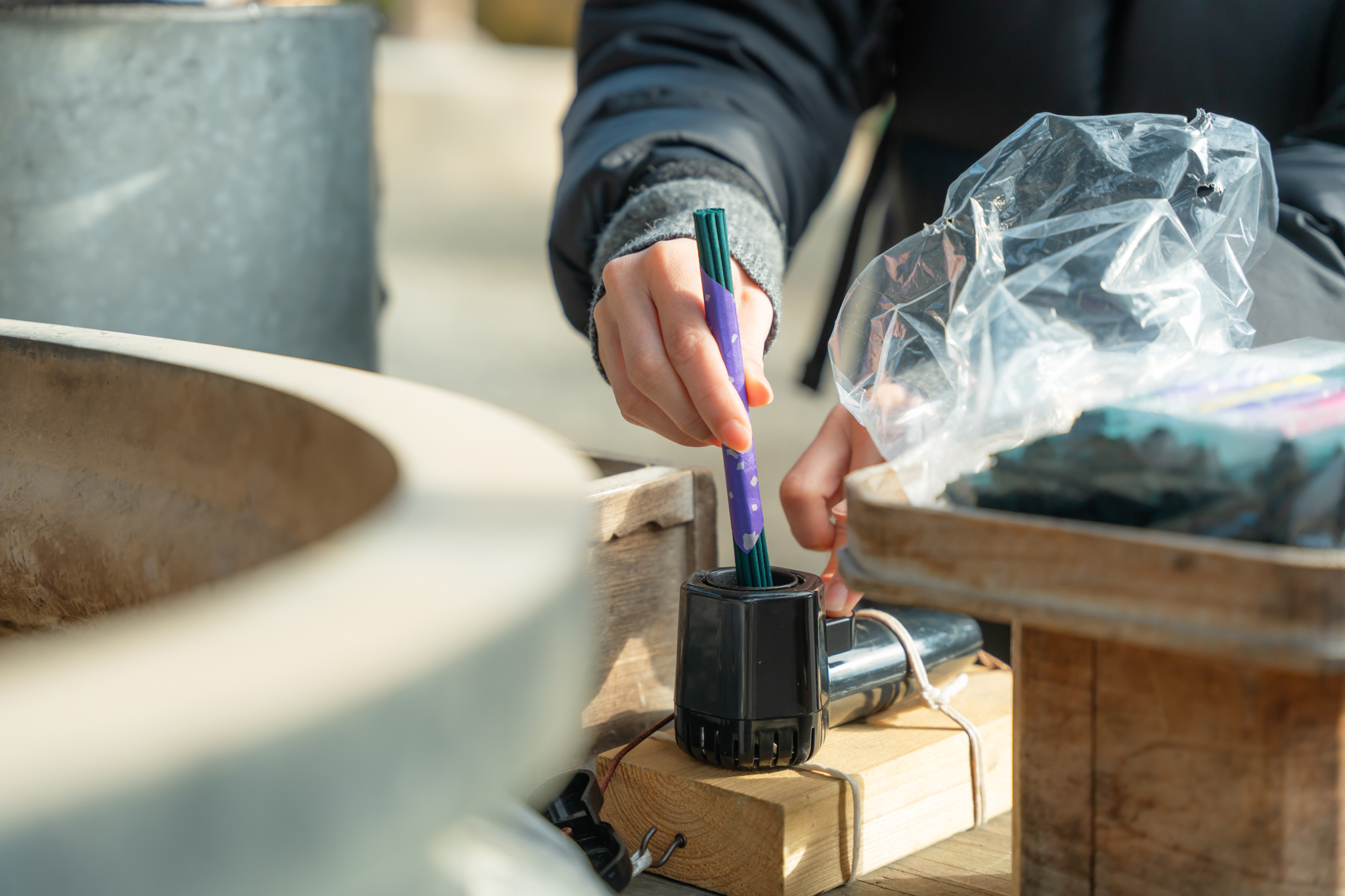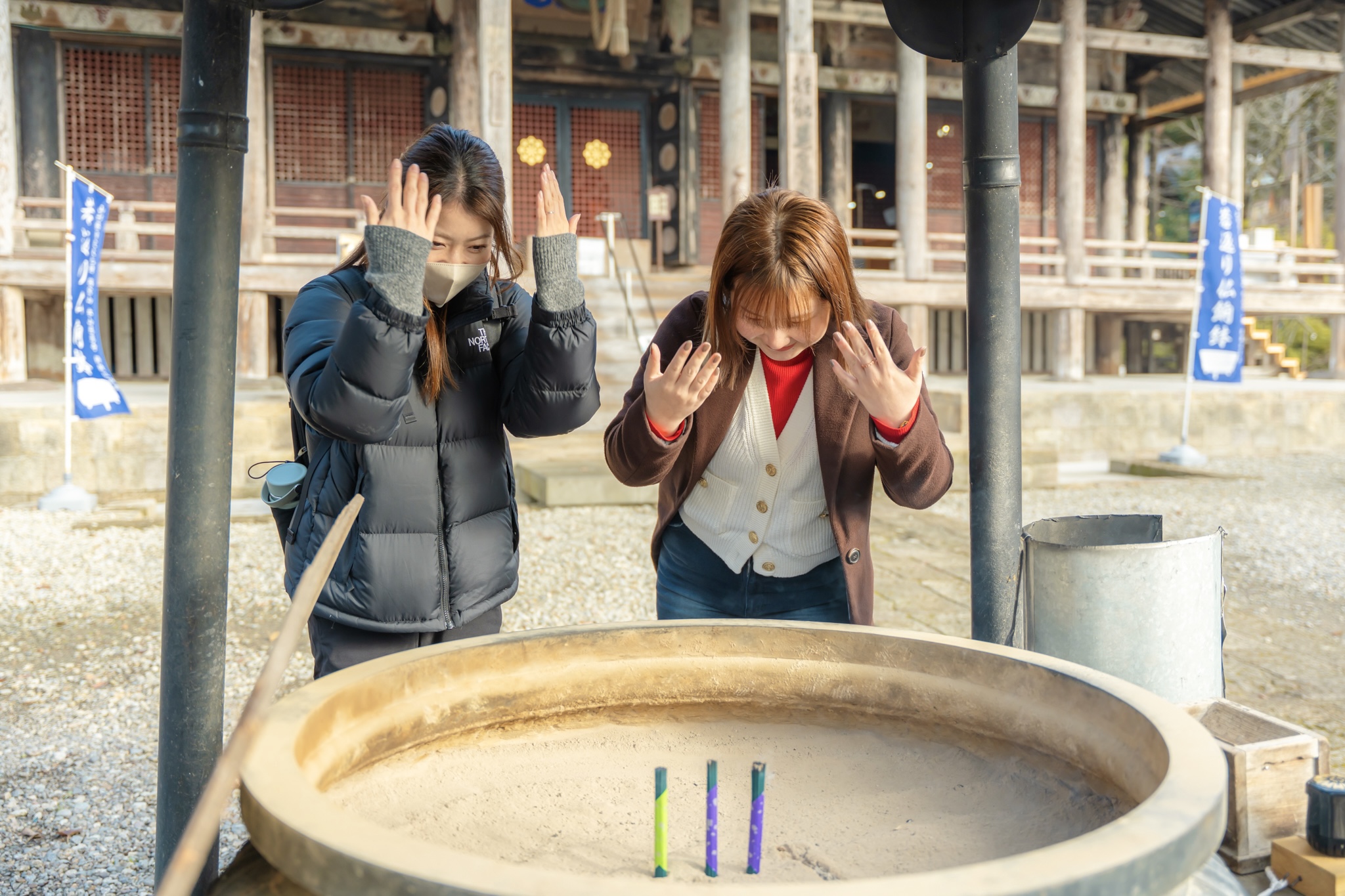 煙がゆっくりと立ちのぼり、線香の香りが広がります。身も心も清めて、いざ!