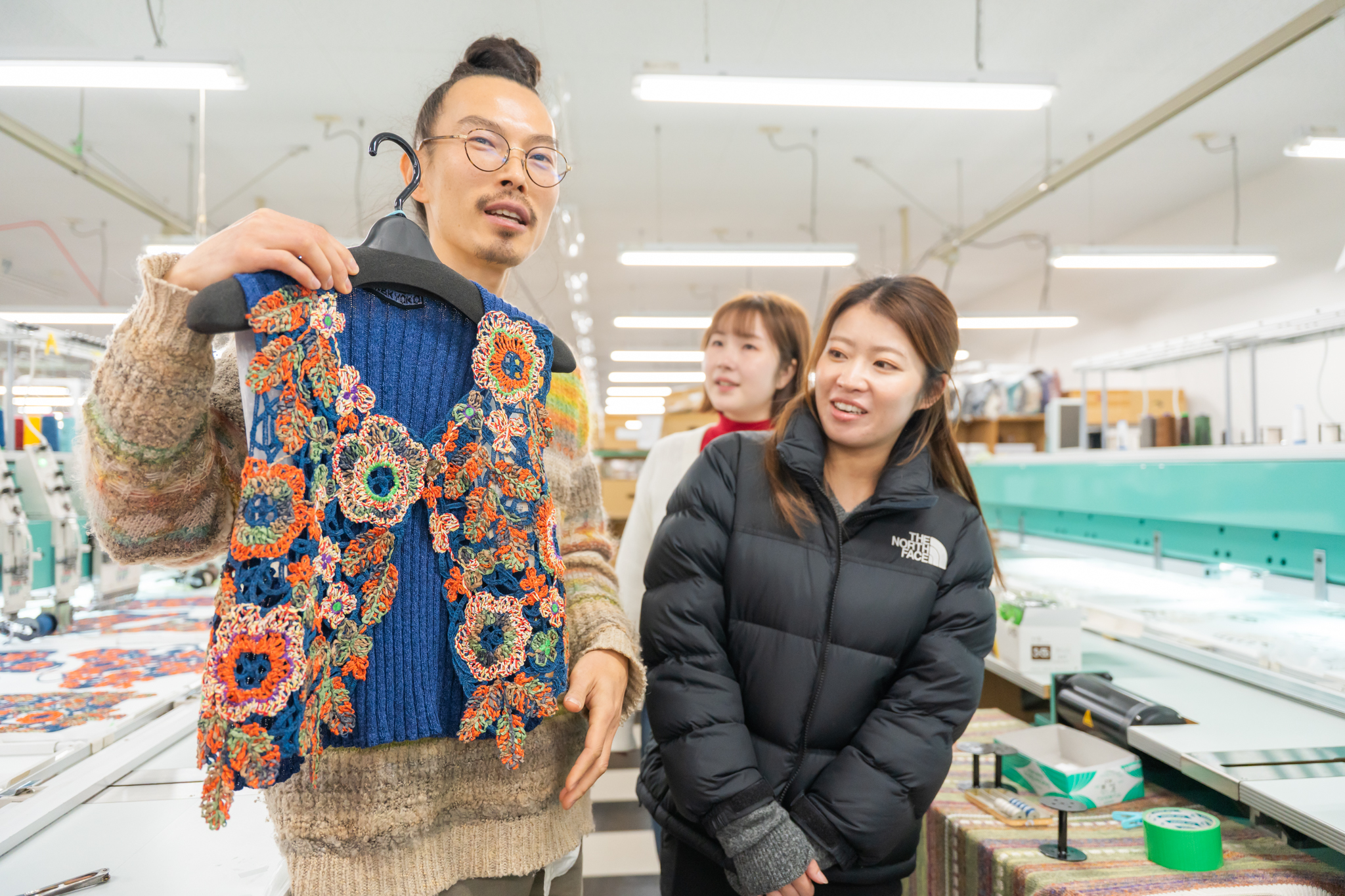 出来上がったニットや刺繍を手で触ったり、従業員さんの作業の様子を目の前で見たりして、佐藤繊維の世界を五感で存分に体験できました。