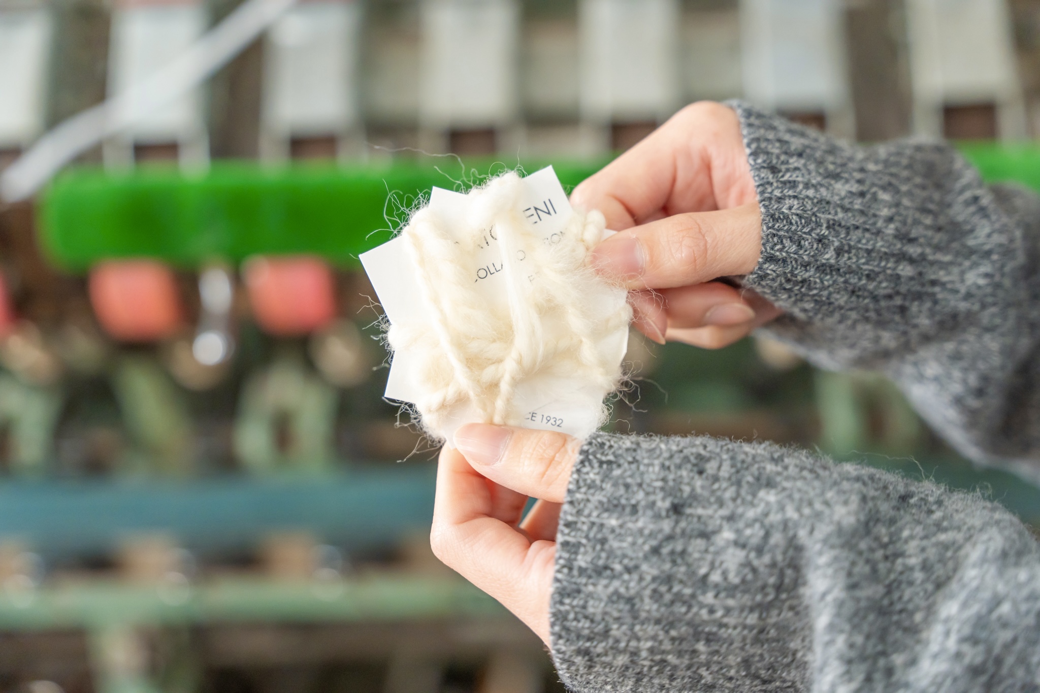 工場に一歩足を踏み入れると、ふわっと広がるウールの香りと、ところどころから聞こえる機械音。