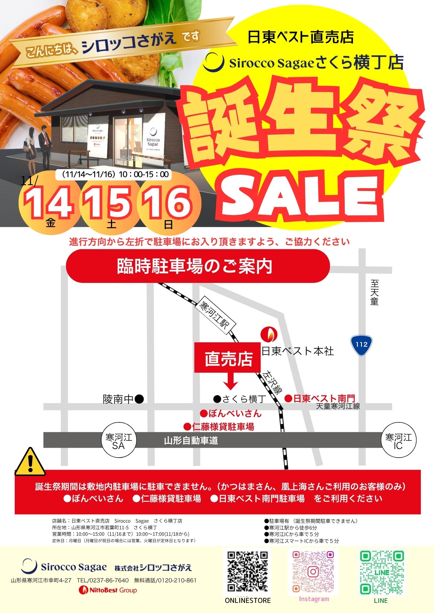 【山形新店 11/14】人気商品が気軽に買える!日東ベスト直売店 Sirocco Sagae さくら横丁店
